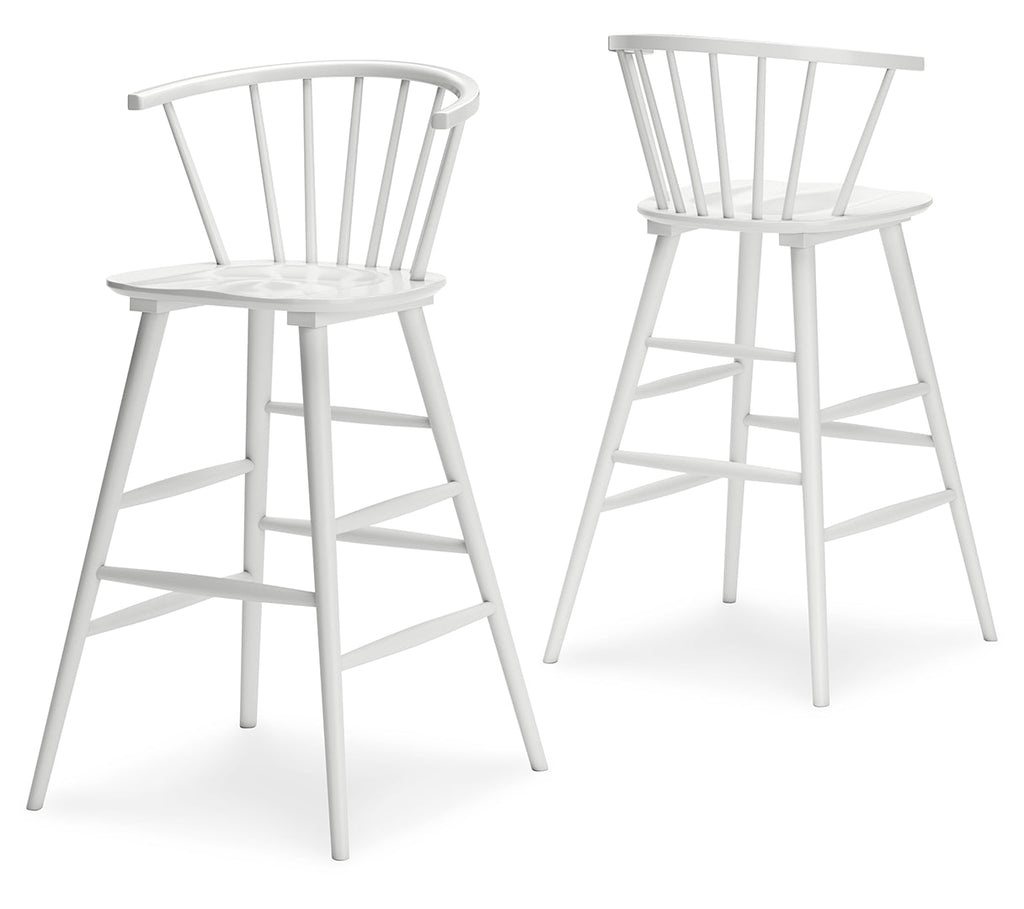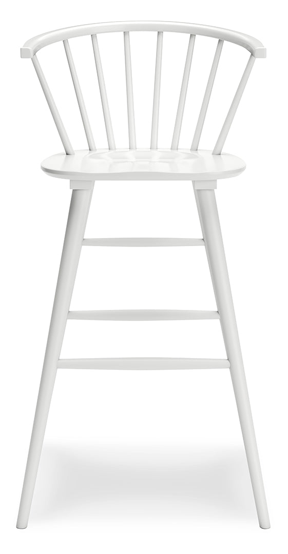 Bring light to your dining area with clean lines and a bright, white finish. This bar height stool sports a low spindle back with a contoured seat for beautiful simplicity. The functional piece marries minimalism with big style for a delightful combination.