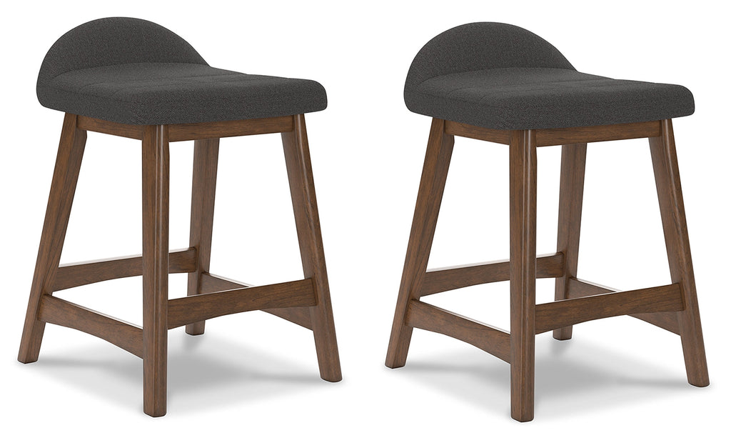 A refreshed take on retro aesthetics. This upholstered bar stool adds an air of playful simplicity to your dining space, capturing the architectural language of mid-century stylings. The seat invites the eye with a soft-edged silhouette and charcoal-hued cushion. A casual, yet timeless, finish on the frame creates visual contrast to complete this study in form and function.