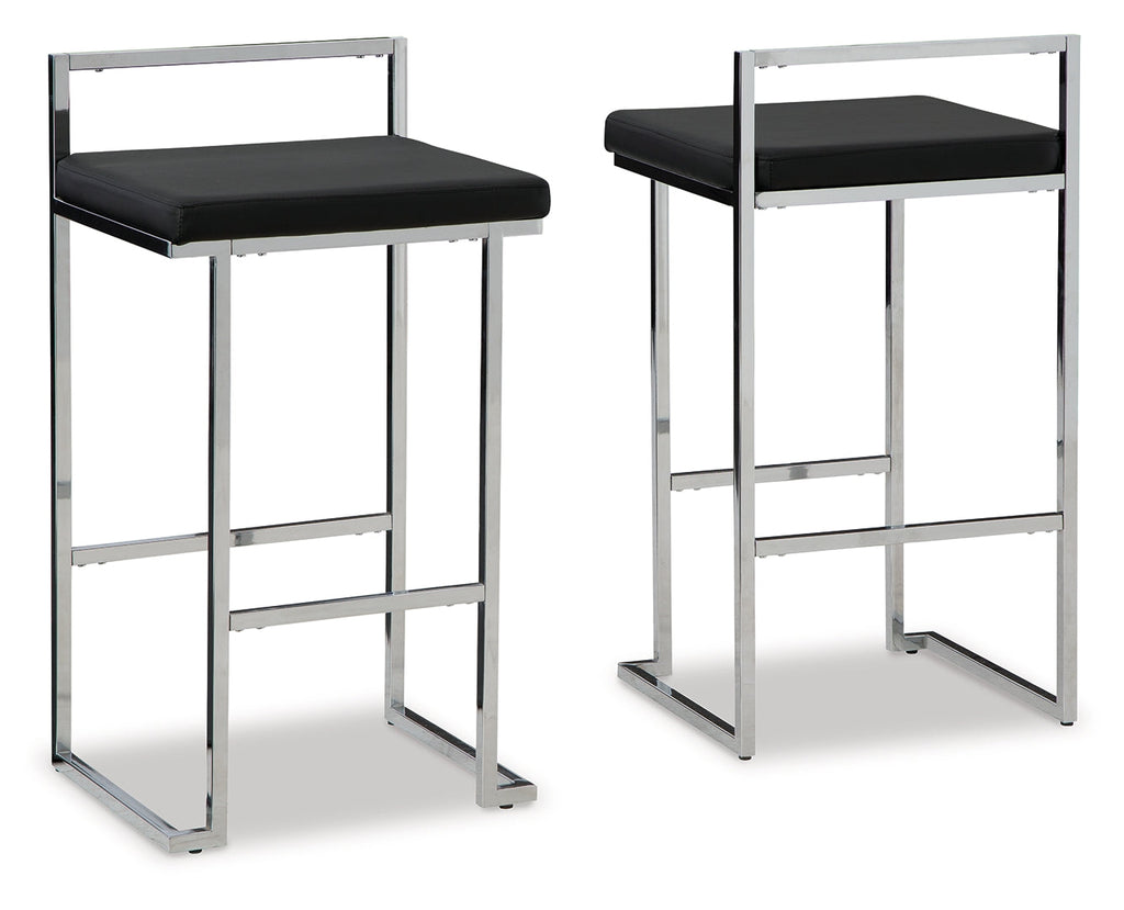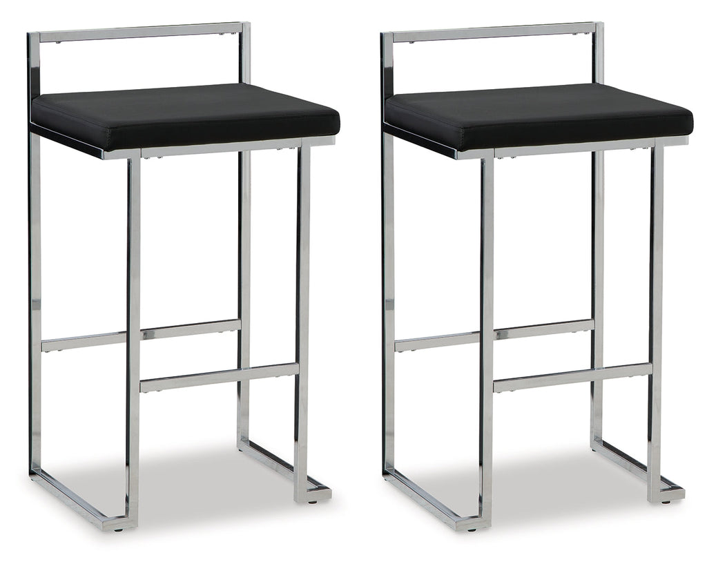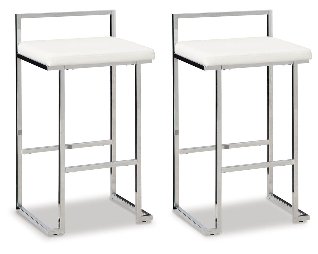 Wowing with a slim but sturdy profile and sculptural design, this bar stool is sure to whet your appetite for ultra-contemporary style. Its comfortably cushioned seat is covered in a fabulous white faux leather, while the metal frame’s chrome-tone finish provides visual contrast.