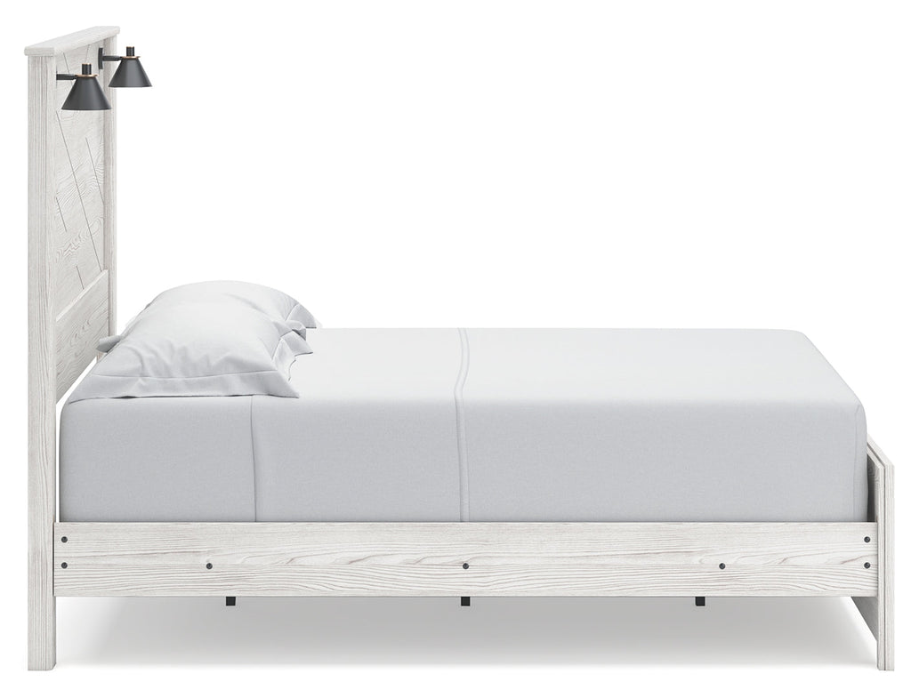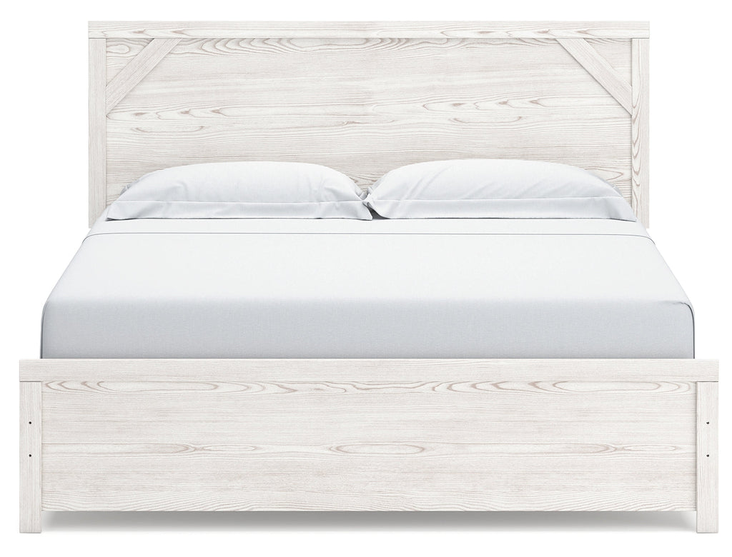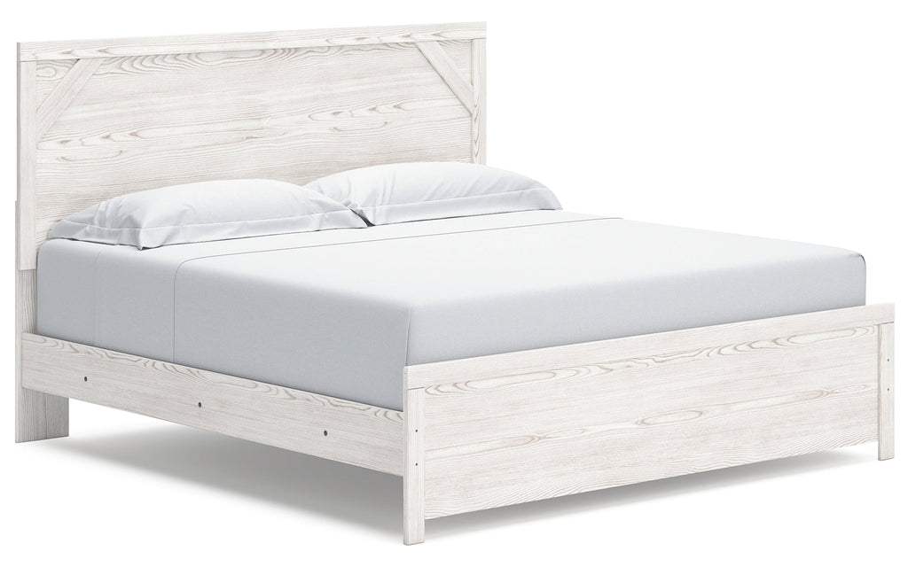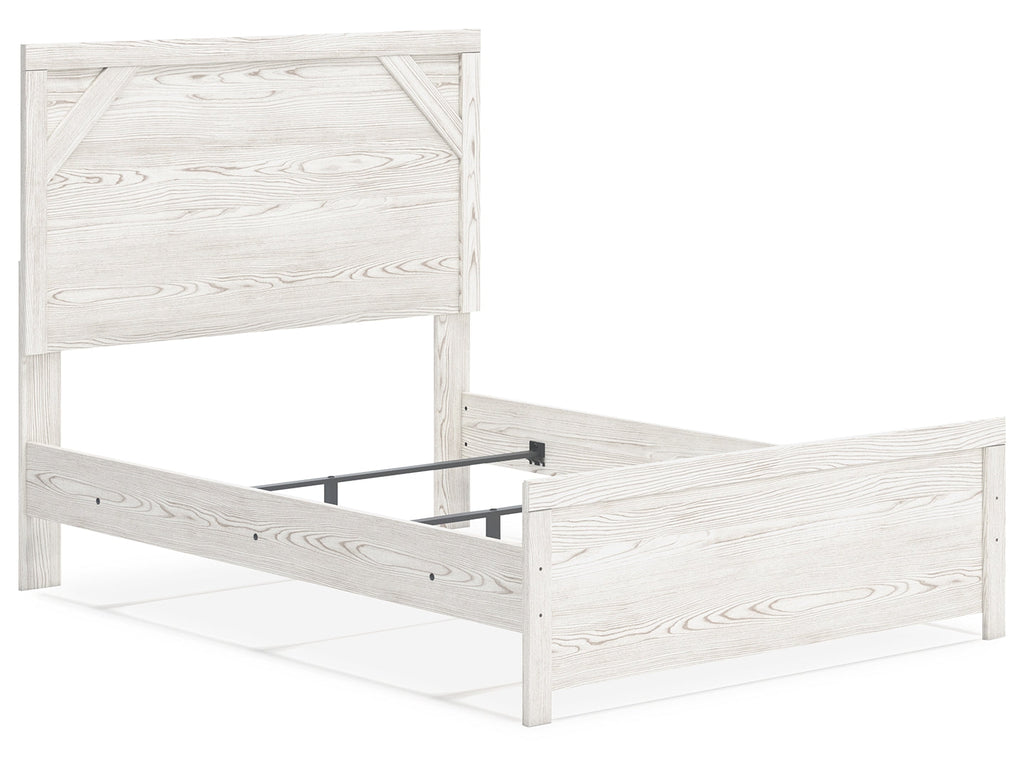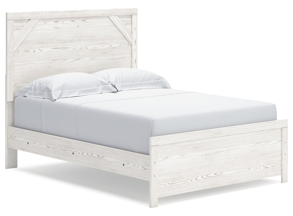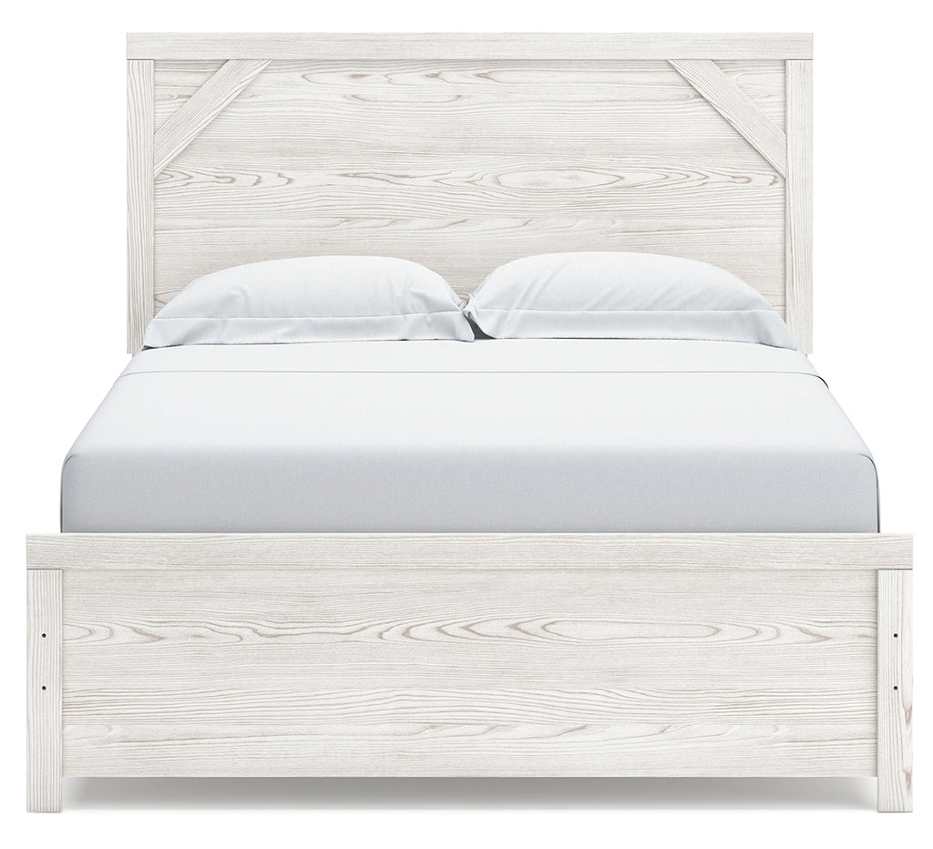 Cool, clean and casually modern. This full panel bed’s wispy whitewash finish sets the tone for your calming sanctuary. Framed elements and cross-brace accents add dimension and authenticity to the bed’s simply stunning profile.