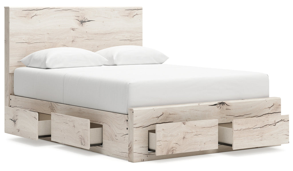 - Includes panel headboard, storage footboard, 2 under bed storage units and roll slats
