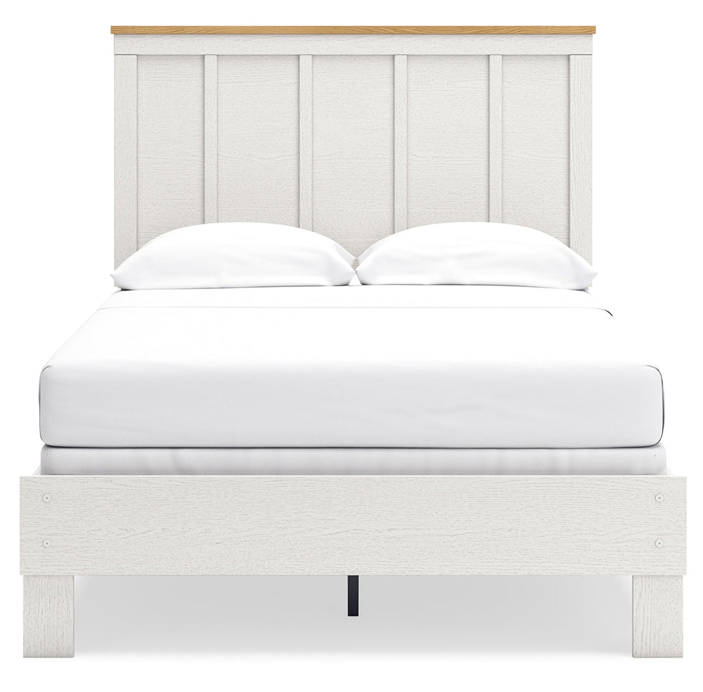 Create a serene countryside retreat with this full bed. A two-tone design effortlessly adds farmhouse style, while the clean-lined panel headboard enhances its charming appeal. Looking for furniture that offers a peaceful escape from your daily routine? This bed is just what you need.