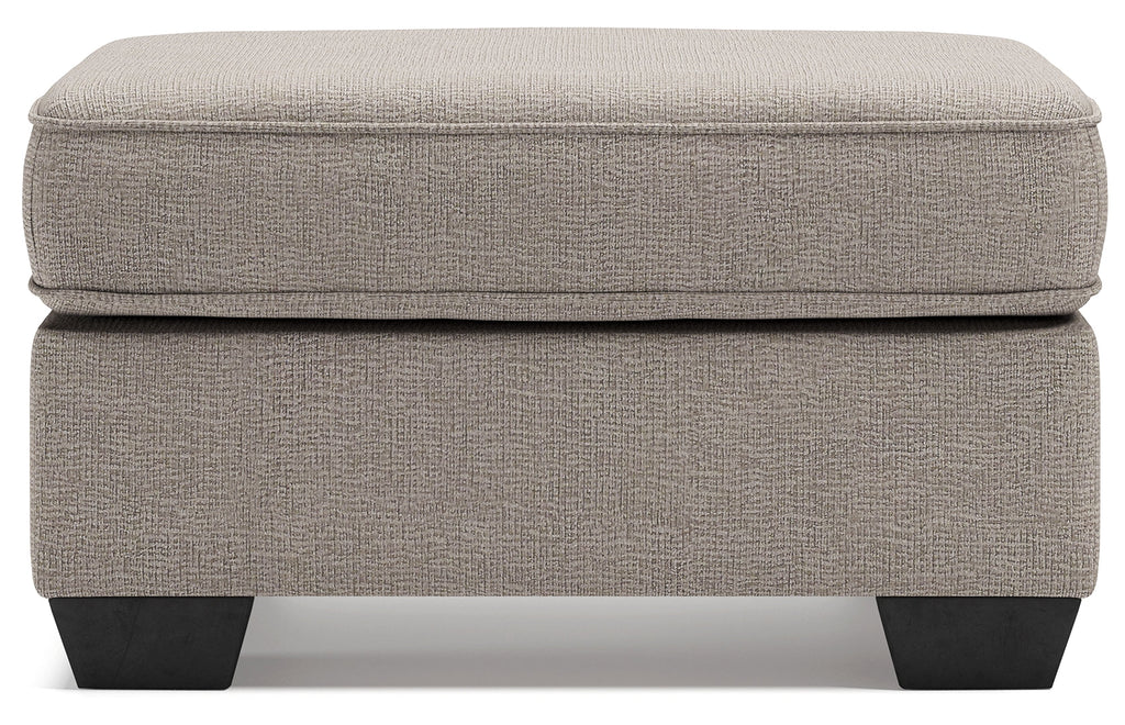 Make your living space that much more livable with this ottoman. Rest assured that its ultra-neutral upholstery with a textural chenille feel goes with anything and everything. Tailored box cushioning and tapered feet lend a clean, contemporary aesthetic. Make it even more enticing by pairing it with the available matching arm chair and reserve yourself the best seat in the house.