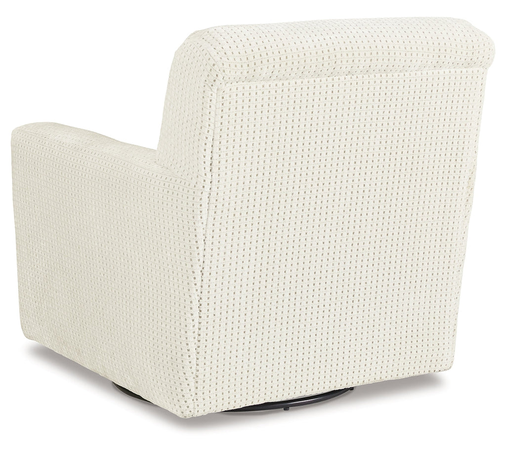 Comfort and class, combined. With its clean lines, open attitude and classic swivel glider design, this accent chair is a great addition to your living room. Along with the 360-degree swivel, it provides an enjoyable sit on a generous seat cushion. The chair's family-friendly upholstery stands up to wear and tear while indulging in a soft look and feel.