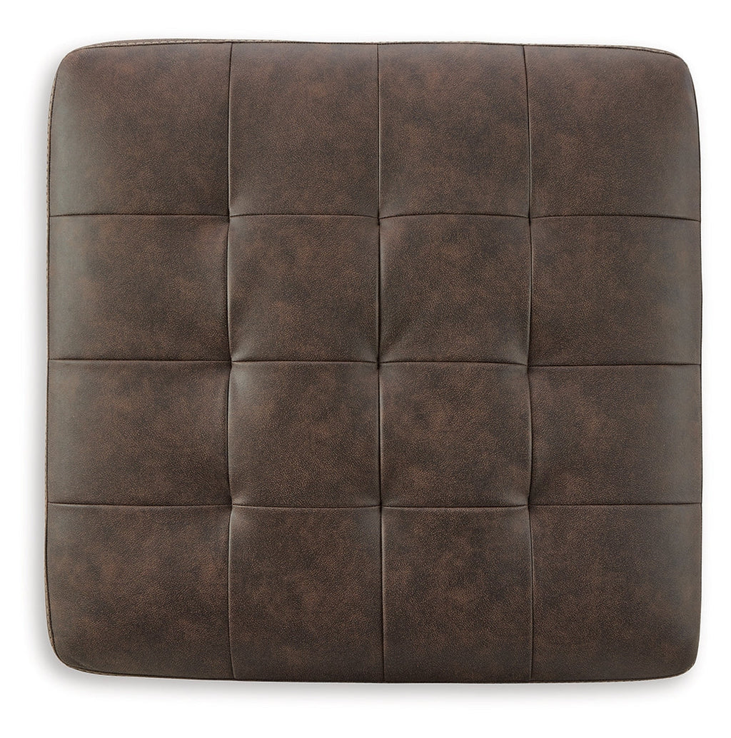 If you love the idea of a luxe look that won't break the bank, make yourself comfortable with this alluring oversized ottoman in walnut brown. Designed to look like the real thing, it's wrapped in a practical faux leather loaded with natural tonal variation and a soft hand feel. The accent ottoman is dressed to impress with jumbo stitching, tufted details and wide block feet for a clean-lined, modern touch that appeals to a contemporary taste.