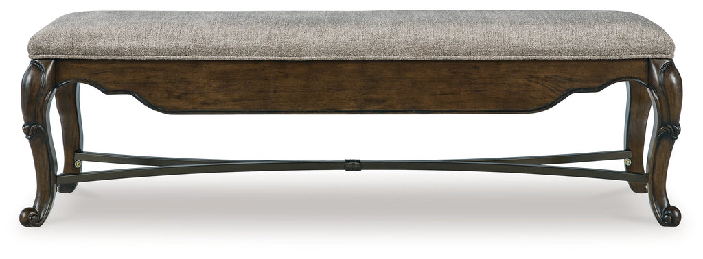 From its ornamental appliques to its large scale, this dining bench makes a bold statement. With ornately shaped legs, a plush cushioned seat and a storage drawer, the opulent bench wows with stunning style. The look is timeless. The feel? Right at home.