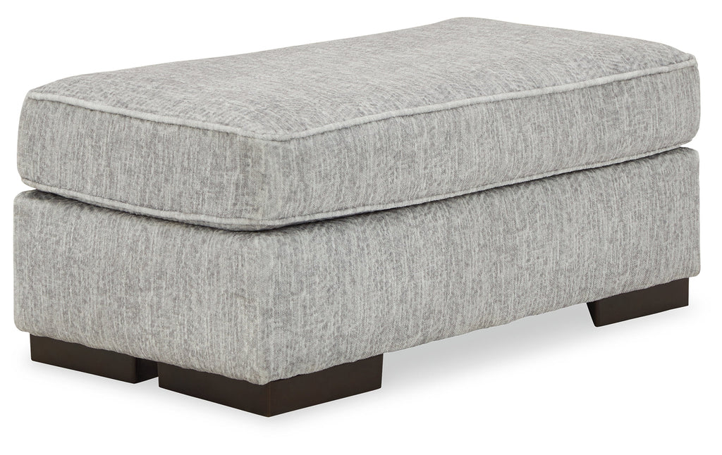 Make your living space that much more livable with this ottoman. Topped with plush softness, it invites you to kick up your heels in style. If you love a touch of texture along with a richly relaxed aesthetic, you’re sure to appreciate the ottoman’s gorgeous gray upholstery with a subtle chevron effect.
