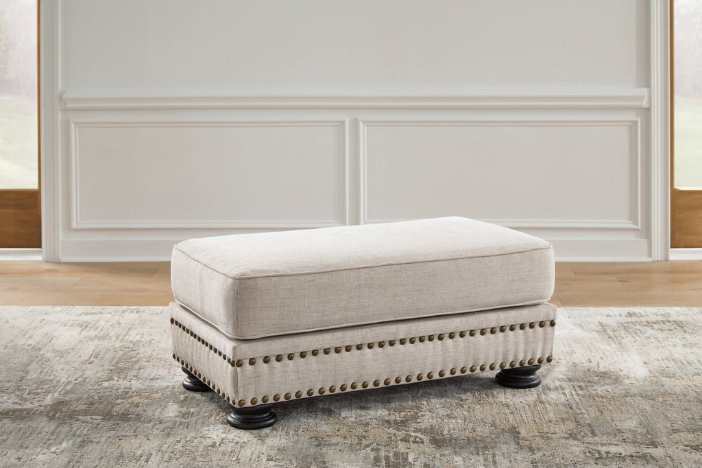 Talk about a looker. This ottoman has folks head over heels in love. More than easy on the eyes—with its nailhead trim accents, linen-look upholstery and newfangled decorative turned legs—it’s also got quality and substance. All that's missing is you.