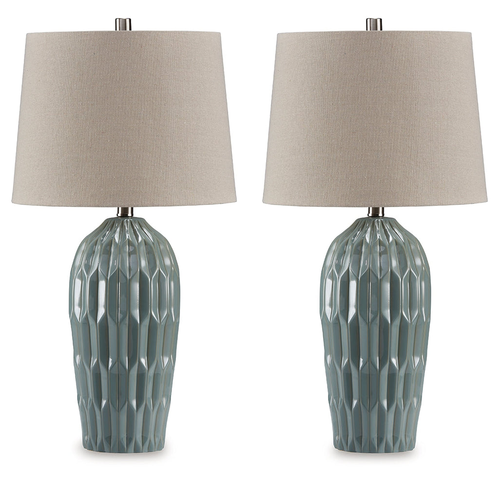 Contemporary with a retro vibe, this table lamp is hard to miss. A dimensional design on the ceramic base shines a bright light on sophisticated style in the bedroom, entryway or your favorite spot.