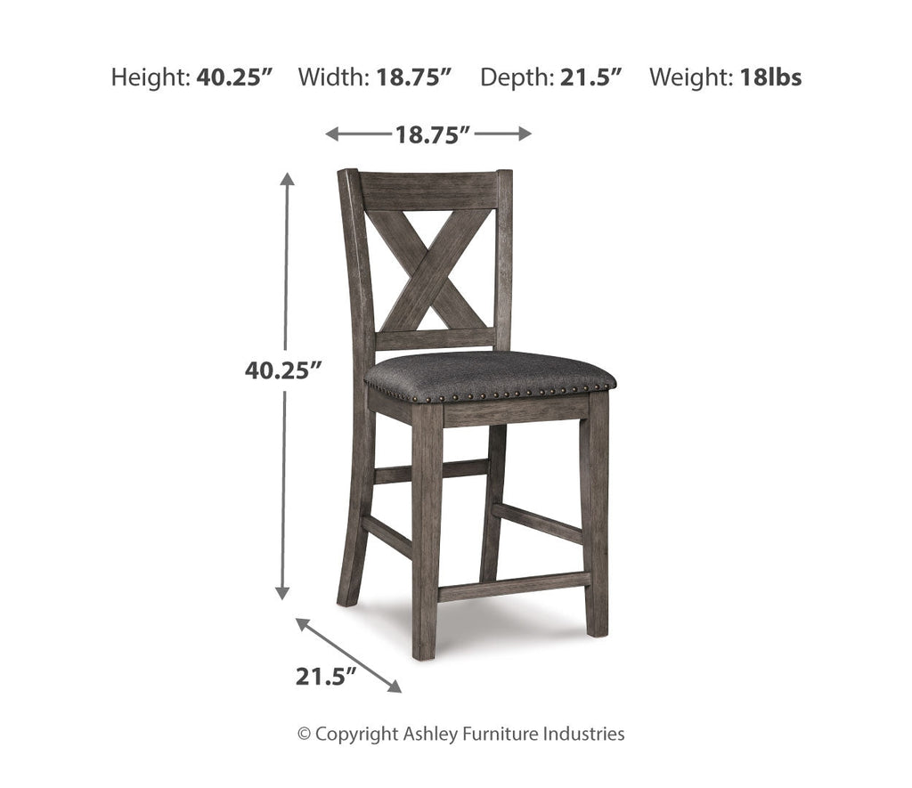 Bring a relaxed yet refined sense of good taste to your space with this 5-piece counter-height dining set. The antiqued gray wash finish gives the clean-lined design a casually cool sensibility. The table’s side shelves cleverly balance form and function while the classic x-back design and textured gray upholstery of the stools serves up high style. This set is an inspired choice for modern farmhouse living.