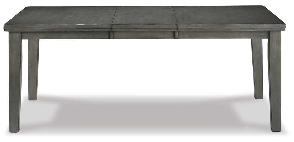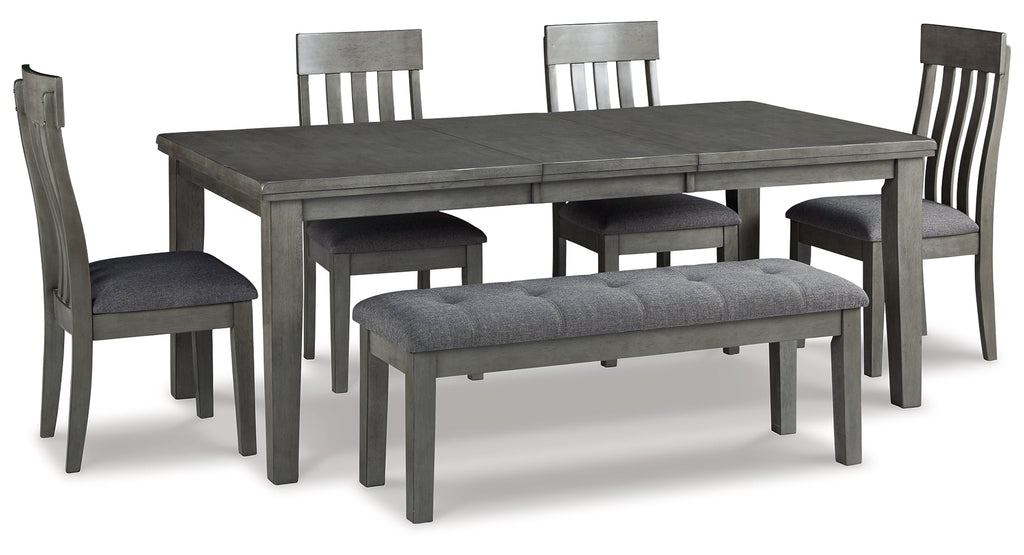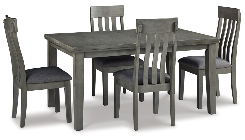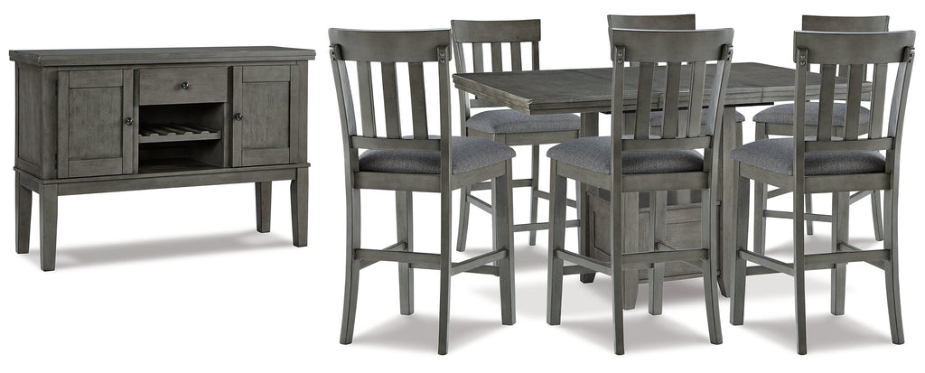 Cool and on-trend. This counter-height dining package sports an antiqued gray finish and gray textural fabric for a contemporary-yet-casual feel. The table features a storage base and removable leaf for extra seating room, making it a breeze to clear off clutter and expand your table space. Comfortably cushioned, the barstool features a padded seat, while its contoured comb-back design adds a dash of geometric flair. With this set, it's easy to dine in style.