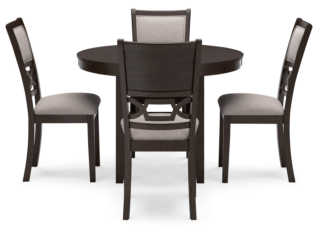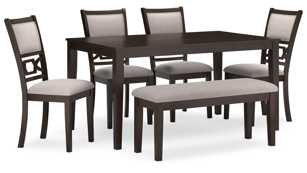Can’t decide between classic and contemporary? Embrace the beauty of transitional style with this casually sophisticated dining table and chairs. The clean-lined profile and traditional cherry finish merge with contrasting upholstery to create a timeless yet on-trend look when guests gather. A discreetly placed lower shelf simply makes great storage sense.