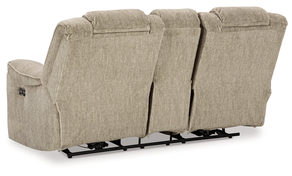 Change can be a good thing—especially when it takes lounging to a whole new level. Covered in high-pile fabric with rich tonal variation, this power seating package cradles you in comfort. And if it’s ambiance and connection you’re after, the set sports a blue LED backlight and USB charging to complete the experience.