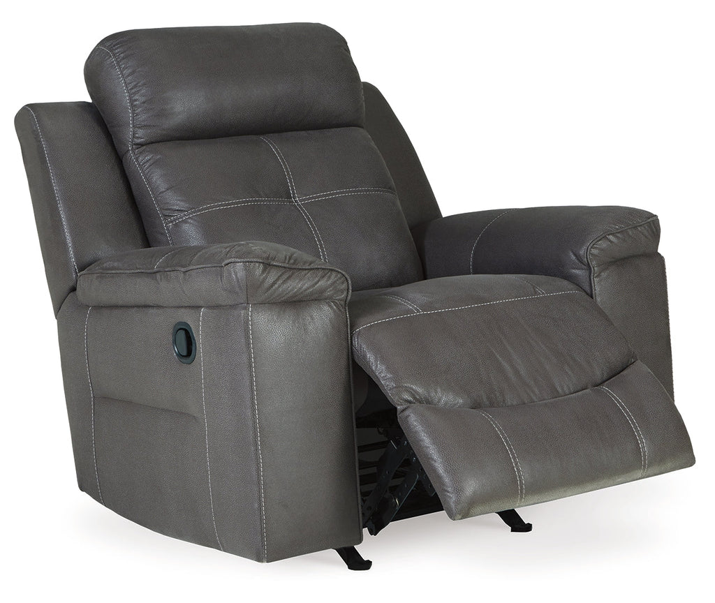 Rustic character comes forth in this reclining sofa and loveseat set. Designer stitching adds a fashion-forward touch to its soft cushions. Faux suede fabric speaks to your knack for superior-quality materials. The high backs provide ample support as you get off your feet for a bit. And with a simple pull of the tab, you’ll be easing back into relaxation. Infinite levels of comfort await.