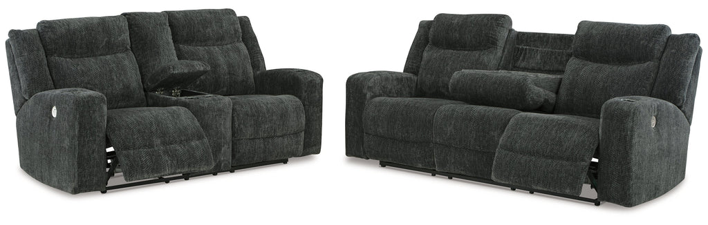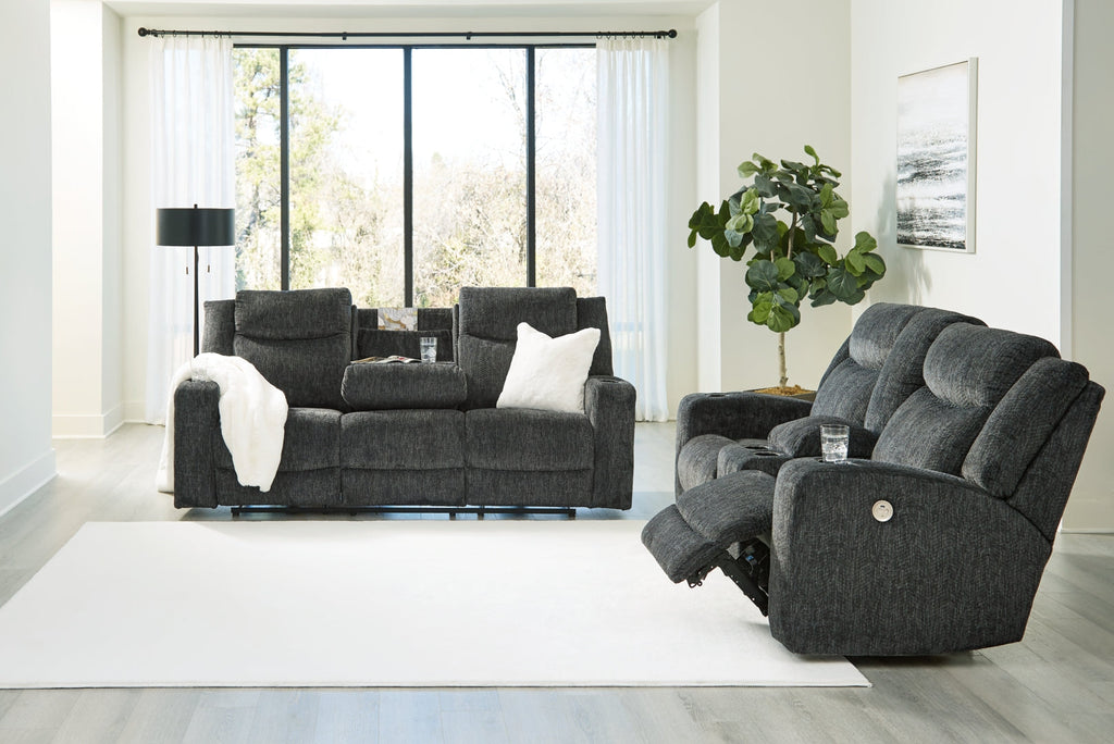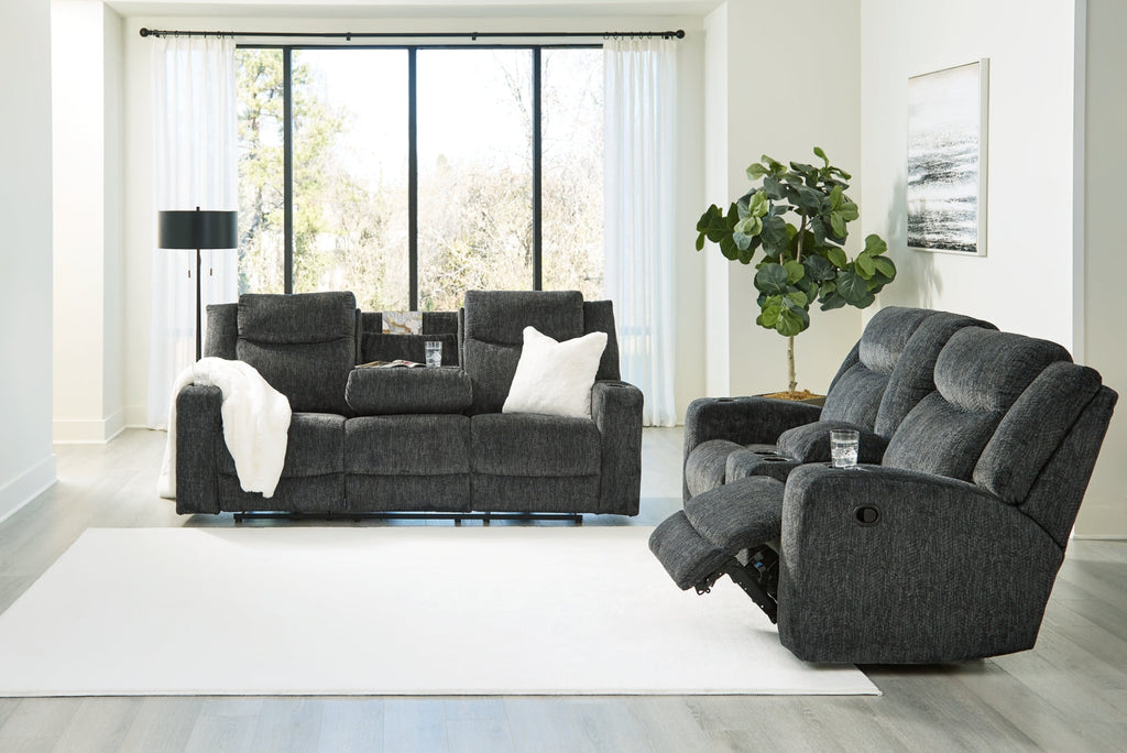 Ideal for those who seek synergy of form and function, this seating package is made for everyday indulgence. Its motion features are decidedly modern; the upholstery velvety soft. A versatile, dark neutral hue takes you back to style basics. Track arms frame the chunky profiles, completing this relaxed approach to contemporary decor.