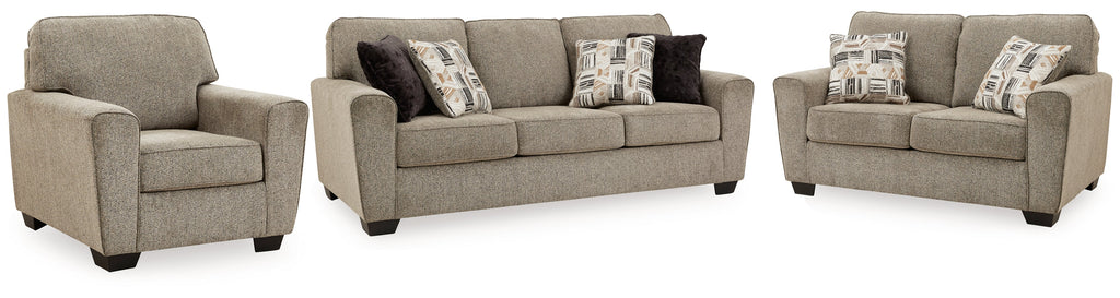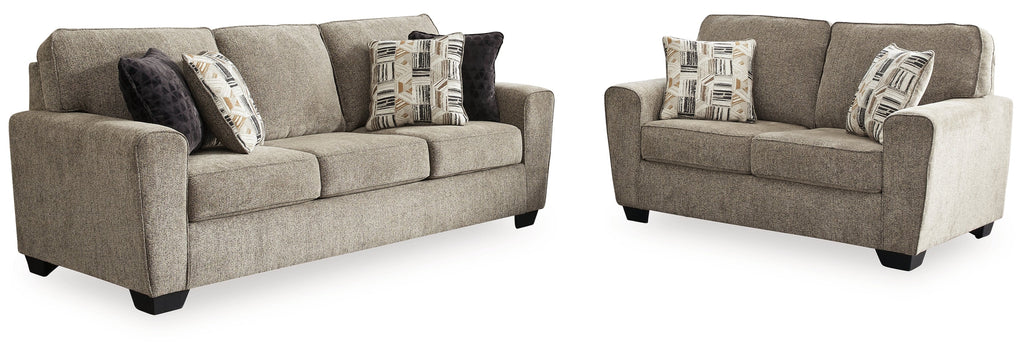 For an upholstery package that feels as good as it looks, the choice is clear. This package's neutral mocha hue blends effortlessly with any room decor and color scheme. The soft textured chenille fabric with chevron effect beckons you to sit, prop up your feet and relax. Wide track arms elevate the look with a touch of contemporary sensibility, enticing you to settle in and stay awhile.