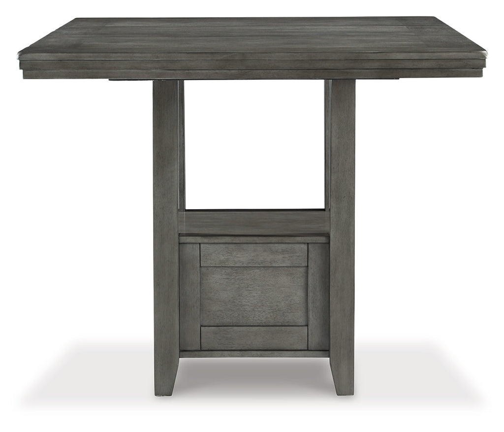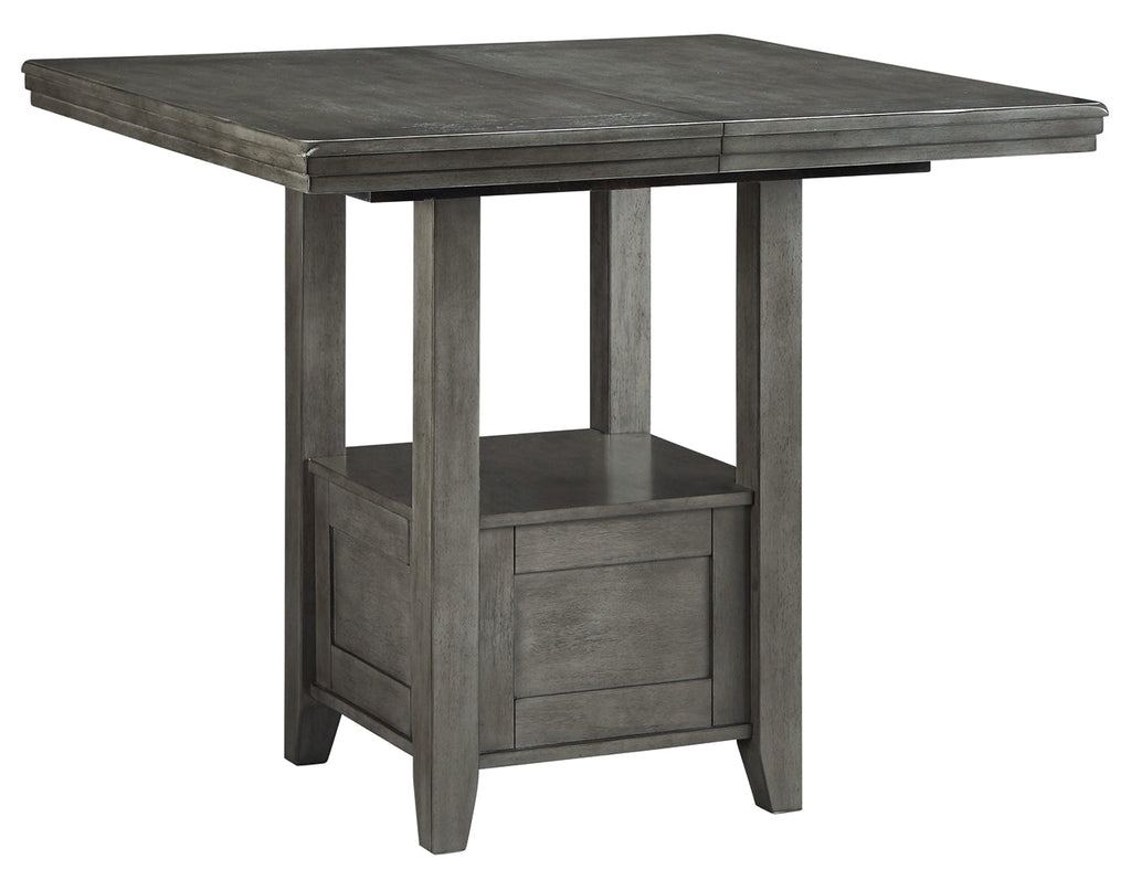 Cool and on-trend. This counter height extension table sports an antiqued gray color for a contemporary-yet-casual feel. The table features a storage base and removable leaf for extra seating room, making it a breeze to clear off clutter and expand your table space. Dining with friends and family has never been so stylish.