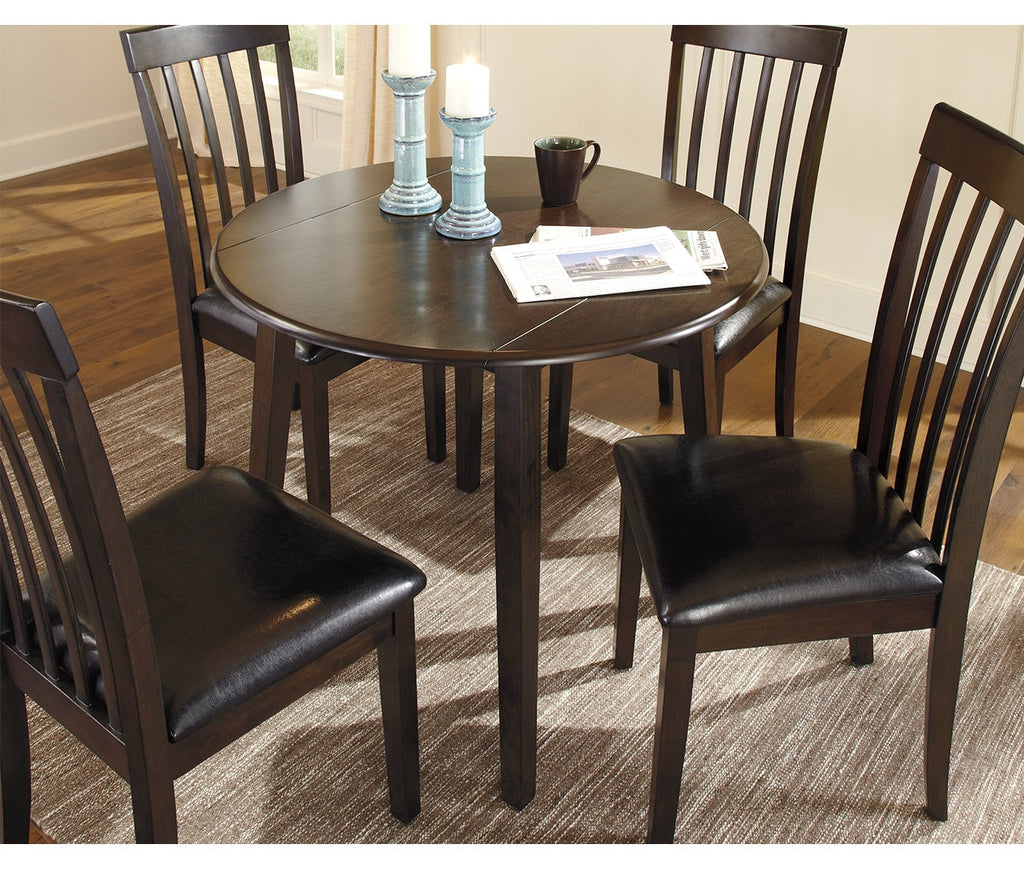 You might be short on space, but you can still long for style. If contemporary tantalizes your taste buds, savor the beauty of this sleek drop leaf dining table. Dark and dramatic, it packs plenty of appeal into a compact design.