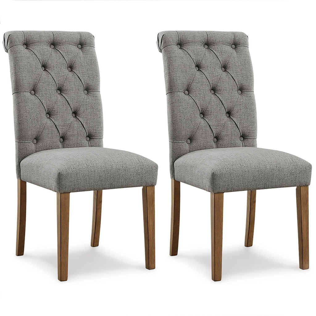 Simple sophistication is closer than ever with this dining chair. The chair is delightfully cozy with its light gray upholstered seat and carefully tailored button-tufted back, while the rolled top rail provides a little extra flair. The legs are finished in a neutral light walnut color for the finishing touch to this charming chair.
