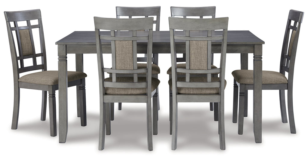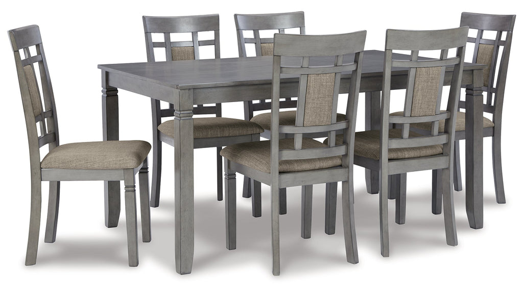 Make a dynamic statement with this dining set. Nothing says "cool" quite like its charcoal gray finish and the open lattice-back design on the six included chairs. With the sturdily made leg table and easy-to-clean polyester fabric on the chair, this set is suitably stylish and functional.
