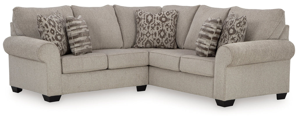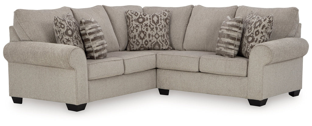 - Includes 2 pieces: left-arm facing sofa with corner wedge and right-arm facing loveseat