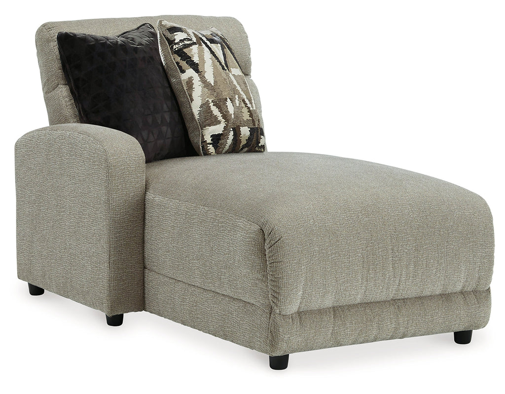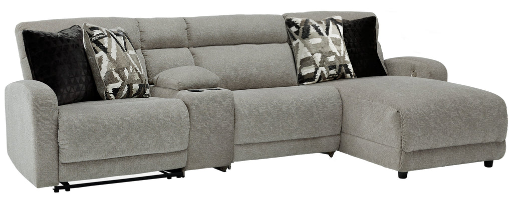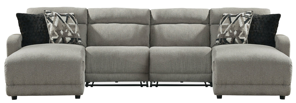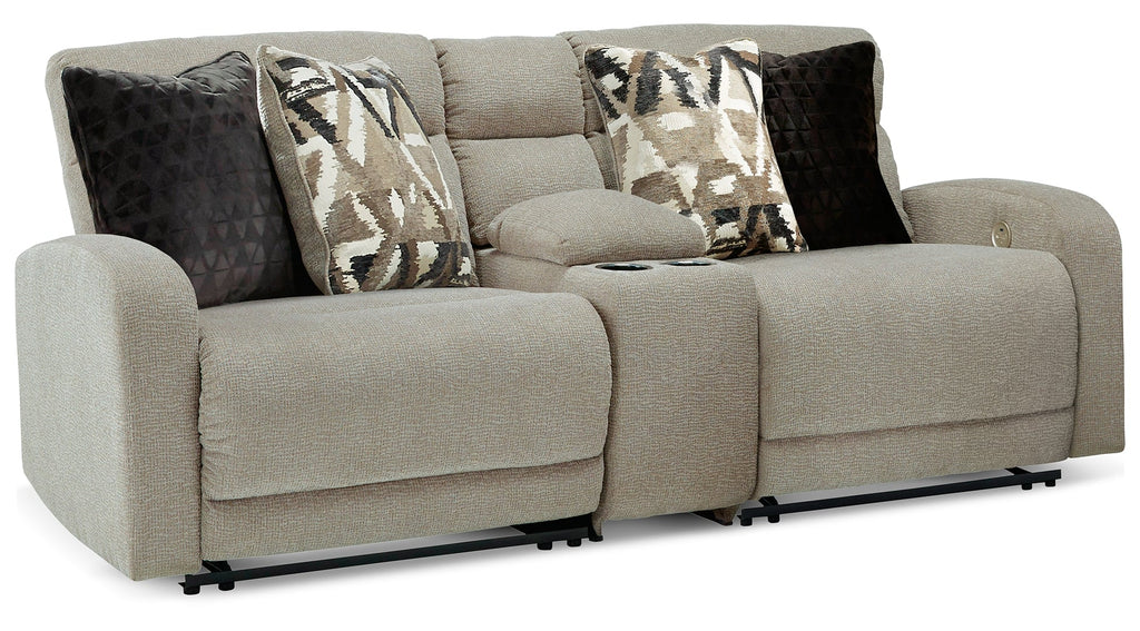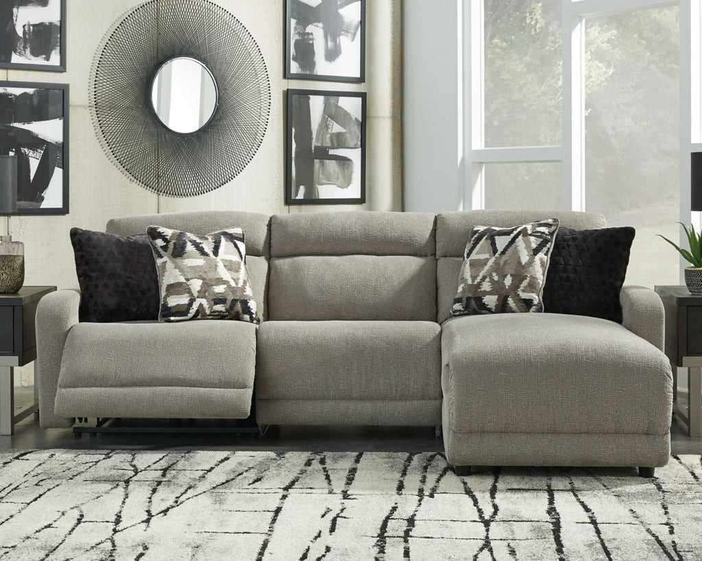 Delightfully modern. Exceptionally comfortable. When it comes to modular furniture with easy-elegant appeal, it’s hard to beat this power reclining sectional. Wrapped in a decadently plush stone-tone fabric for neutral versatility, this chic sectional is dressed to impress with a clean-lined divided back, curved track arms and a low-profile back for a relaxed, contemporary aesthetic.