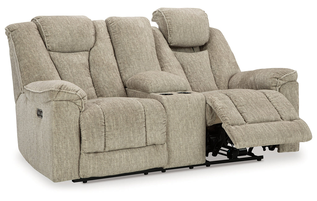 Change can be a good thing—especially when it takes lounging to a whole new level. Covered in high-pile fabric with rich tonal variation, this power reclining sofa cradles you in comfort. And if you're looking for convenience and connection (plus a touch of ambiance), this seating sports USB charging, a center storage console and a blue LED backlight.