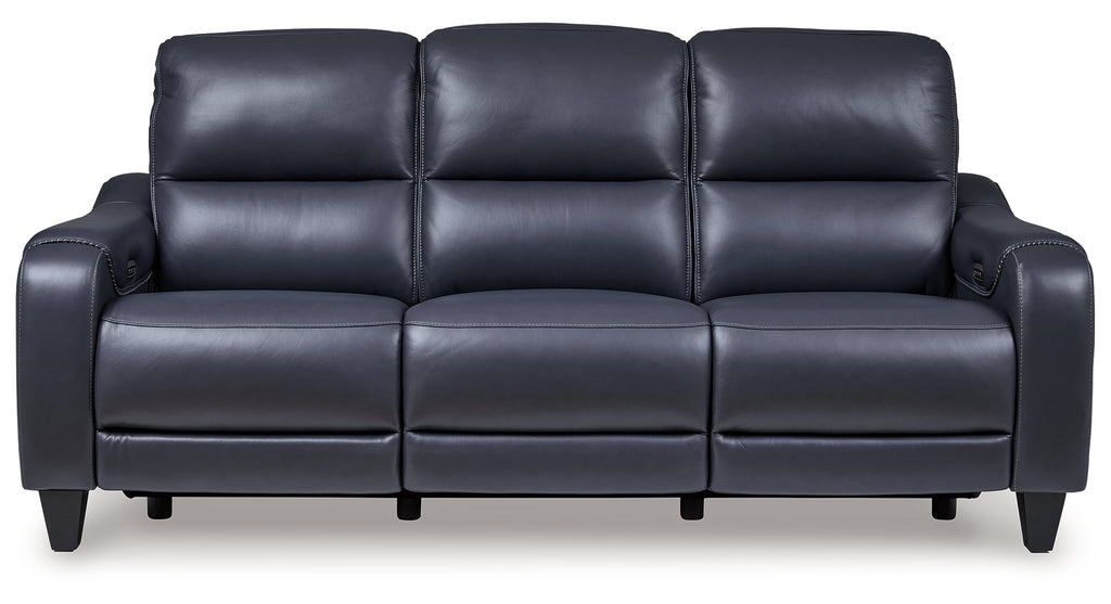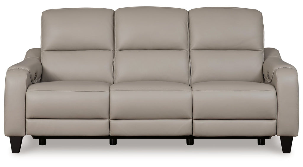 This power reclining sofa puts a sleek twist on laid-back living. It satisfies your desire for comfort without being bulky in design, thanks to subtly incorporated one-touch reclining and adjustable headrests. With chic exposed legs and stunning stitching details elevating the look from the bottom up, this sofa strikes the perfect balance between practical and posh.