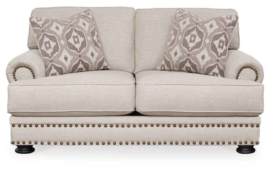 Talk about a looker. The Merrimore loveseat has folks head over heels in love. More than easy on the eyes—with its nailhead trim accents, linen-look upholstery and newfangled decorative turned legs—it’s also got quality and substance. There's room enough for cuddling up with someone special or sprawling out solo.