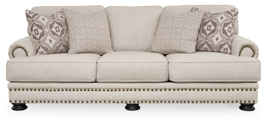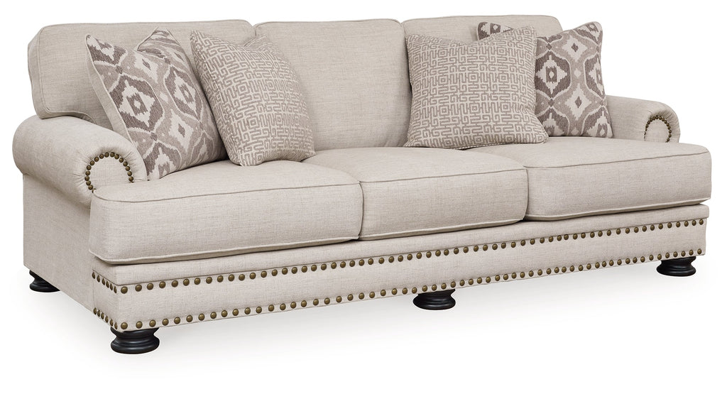 Talk about a looker. This sofa has folks head over heels in love. More than easy on the eyes—with its nailhead trim accents, linen-look upholstery and newfangled decorative turned legs—it’s also got quality and substance. There's room enough for cuddling up with someone special or sprawling out solo.