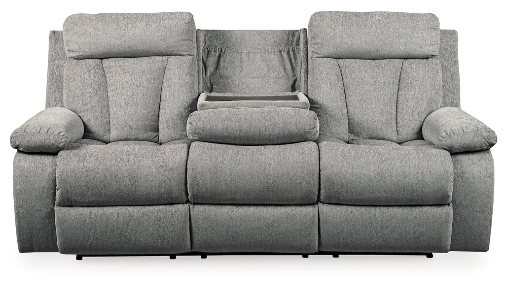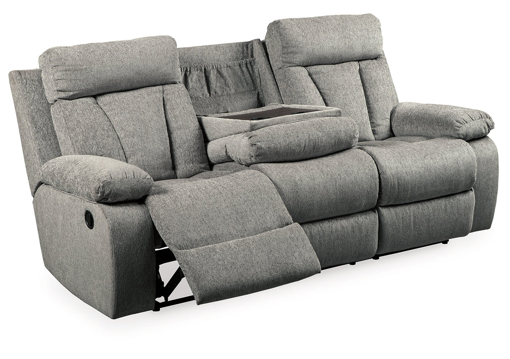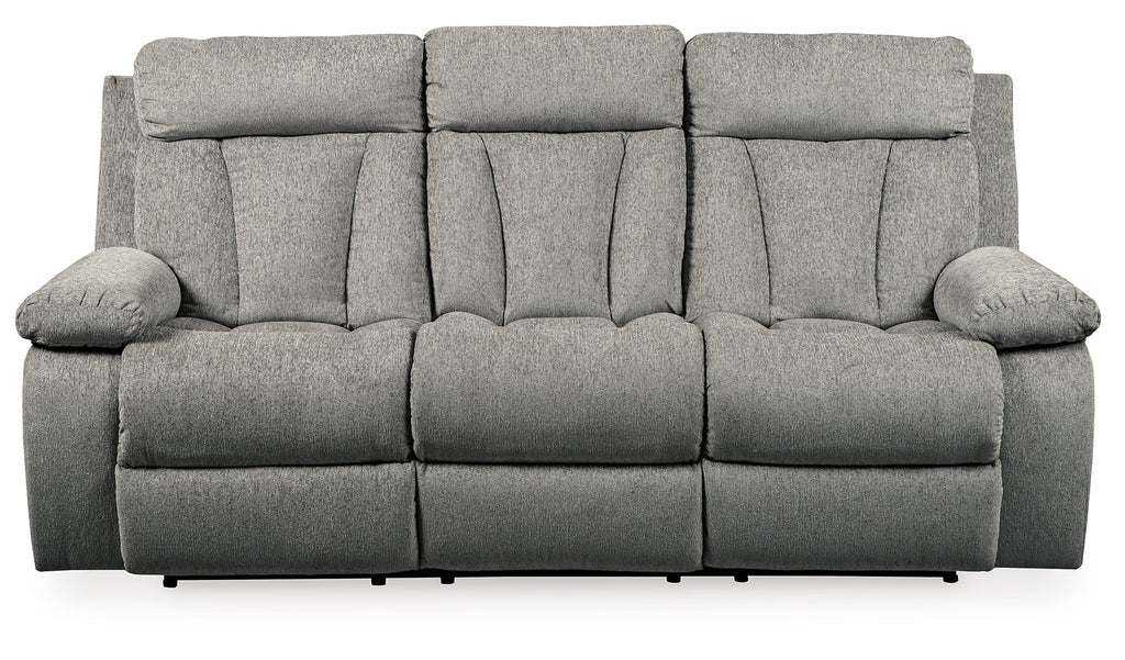 Your to-do list is complete, now it’s time for ultimate relaxation. This double reclining sofa is plush in all the right places, and will support you for longer than you can binge watch your favorite TV show. The neutral upholstery is ready for a patterned throw pillow and some of your time. The middle seat’s back drops down into convenient table top with cup holders, the perfect resting spot for tablets and magazines.