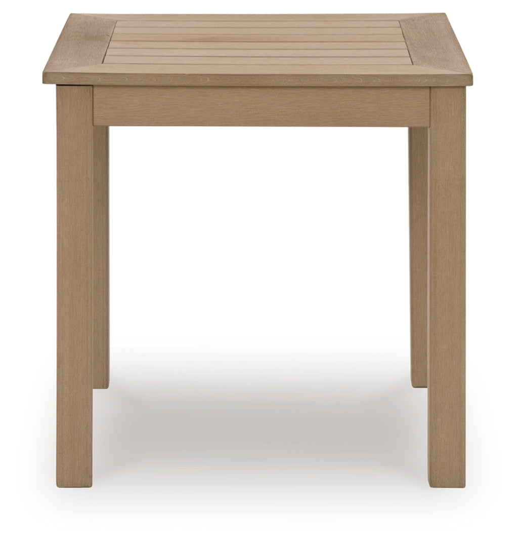 This end table is a beautiful addition to any outdoor living space. Effortless in its simplicity, this piece echoes your easygoing sensibilities. Combining durable, cutting-edge engineered materials, its Weatherwood construction in a blond wood color enhances the contemporary design. Pair this table with the matching sofa and chairs for a spectacular backyard or patio seating arrangement.
