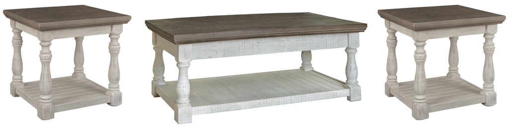 With its richly rustic finish and textural mix, this occasional table set goes to town on modern farmhouse style. Distressed two-tone treatment blends a weathered gray with vintage white for an utterly charming effect. Robust legs lend a hearty, substantial look that feels right at home.