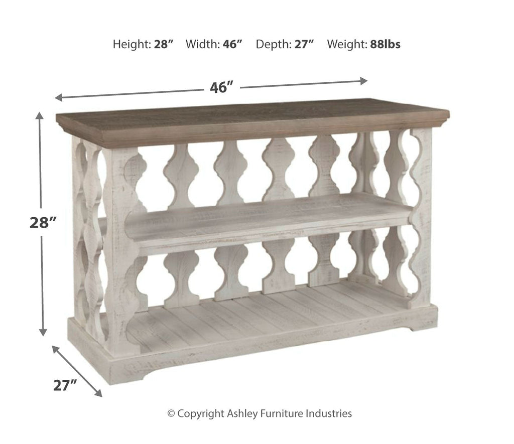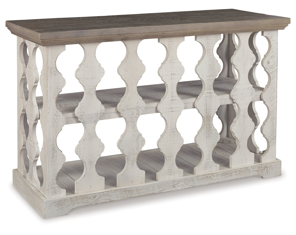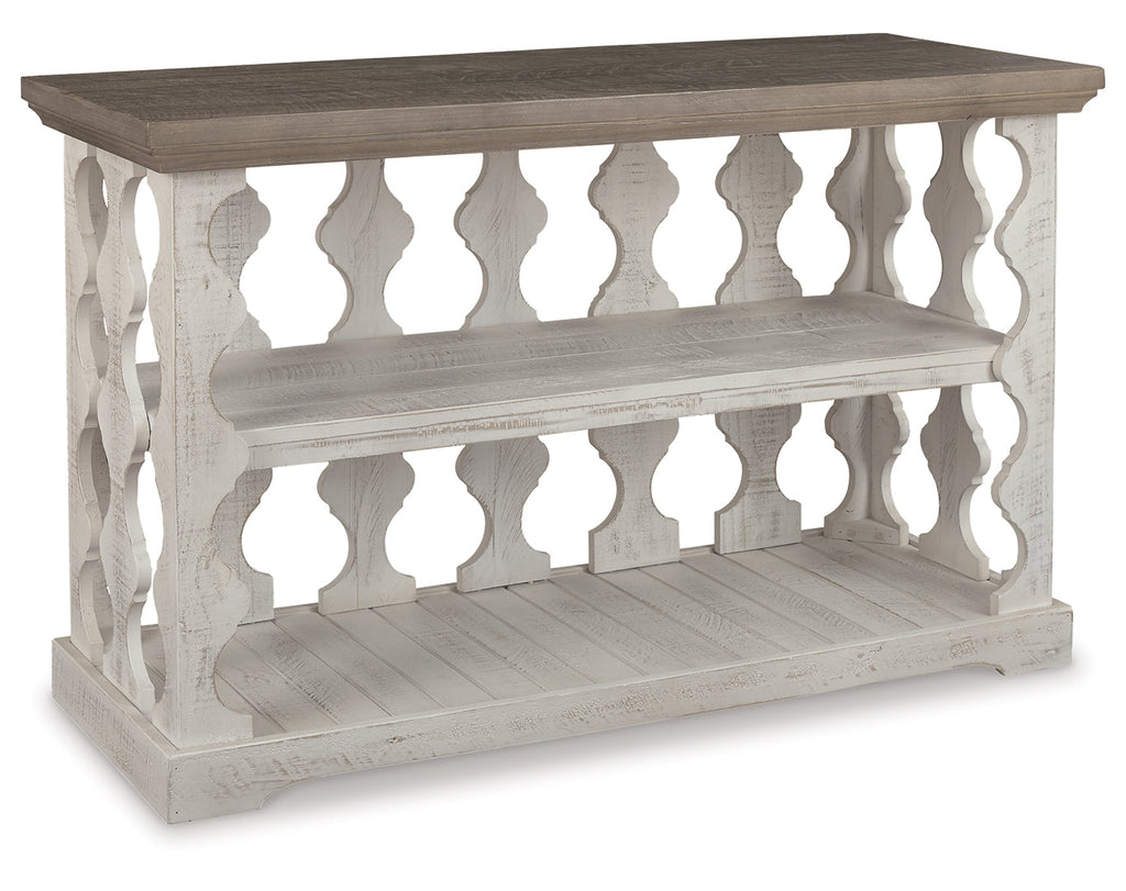 With its richly rustic finish and textural mix, this sofa table goes to town on bygone beauty. Its distressed two-tone treatment blends a weathered gray with vintage white for an utterly charming effect. Balustrade-style planks supporting the top create an eye-catching look that’s anything but ordinary.