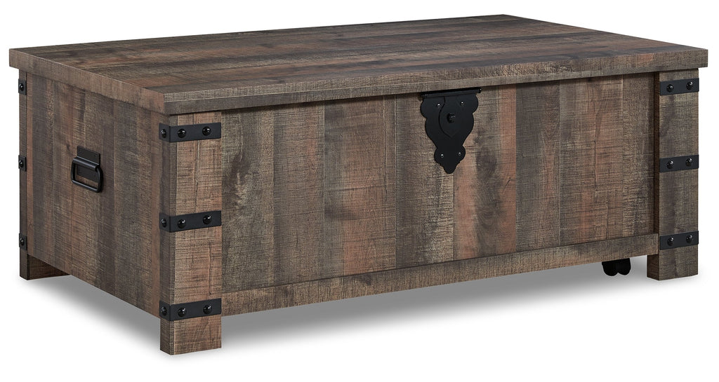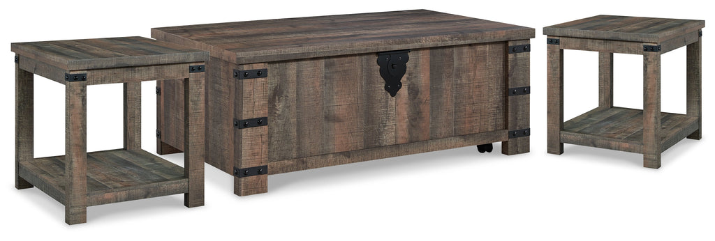 Keep your aesthetic chic and approachable with this occasional table package. The charming tables have an effortless beauty, with a replicated aged barn wood pattern and matte black metal accents adding vintage-inspired elegance. Combining fashion and function, the lift-top design offers a table area or a workspace while a lower shelf is ideal for displaying decor.