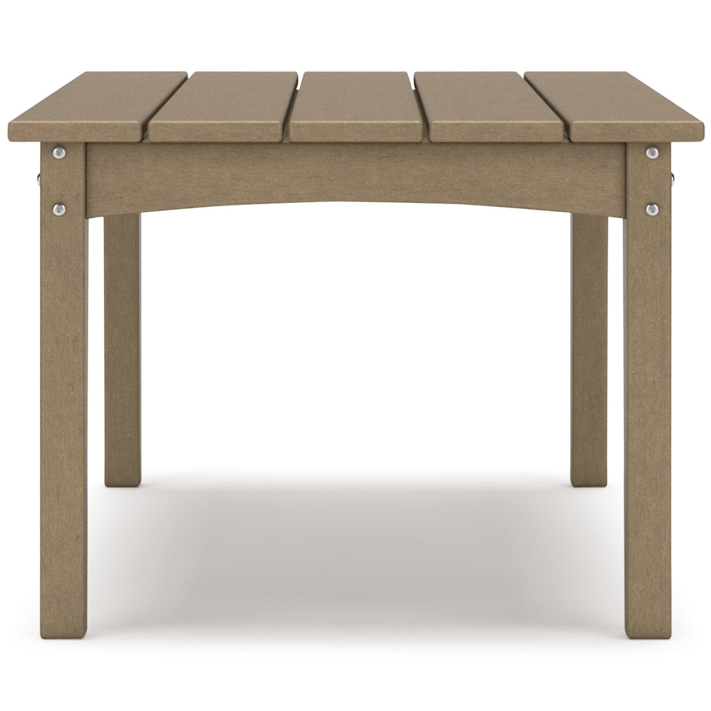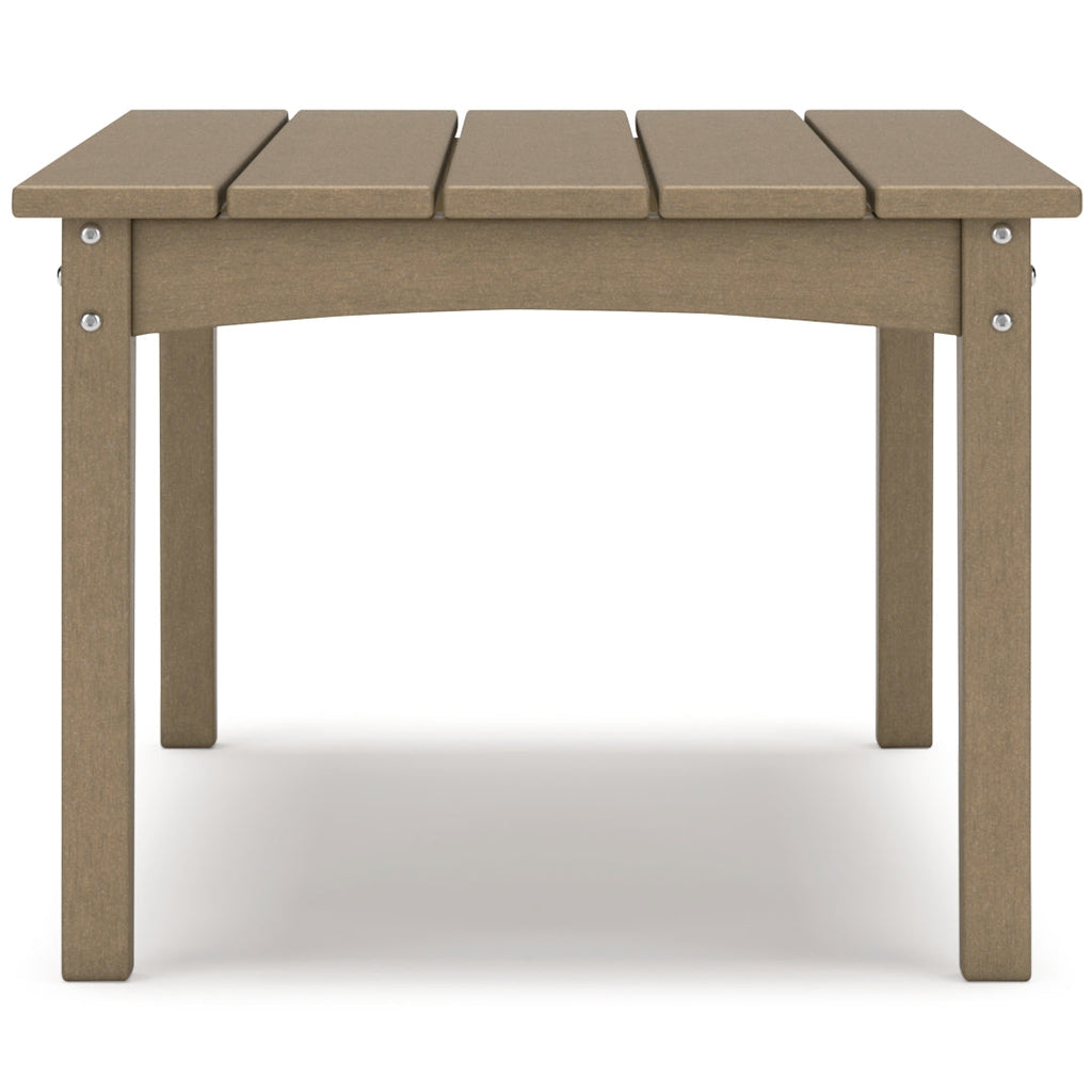 Drift into outdoor entertainment bliss with this coffee table. Dressed in an inviting driftwood hue with a classic feel, it weathers sunny summer days and cozy winter nights with durable MEGA TUFF™ HDPE material. When it comes to form and function, the table's rain-shedding slatted design simply goes with the flow. Use it to hold outdoor decor, drinks or snacks.