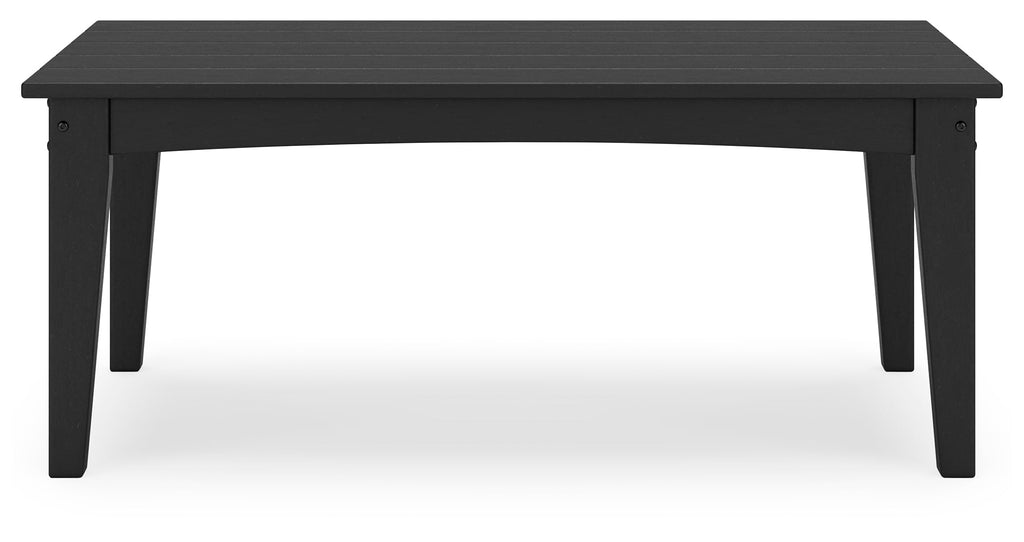 Drift into outdoor entertainment bliss with this coffee table. Dressed in a smart black for a sophisticated feel, it weathers sunny summer days and cozy winter nights with durable MEGA TUFF™ HDPE material. When it comes to form and function, the table's rain-shedding slatted design simply goes with the flow. Use it to hold outdoor decor, drinks or snacks.