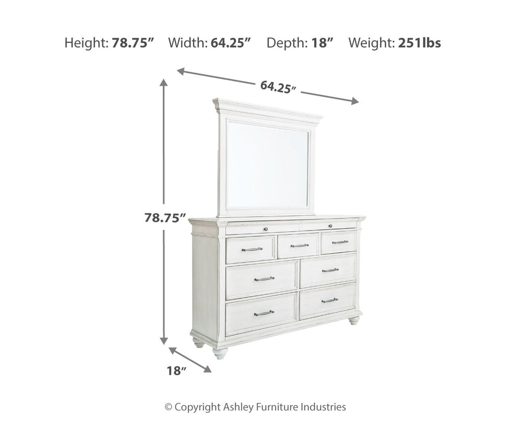 Give your retreat vintage charm and valuable drawer storage with this dresser and mirror set. In a beautifully distressed whitewash finish, you'll love putting it all away in casual style. Seven full-sized drawers and two accessory top drawers will easily accommodate your needs. Its beveled mirror brings magnificent height to this piece. Generously scaled moulding from top to bottom, along with bun feet and drawer handles with a transitional aesthetic, give this dresser and mirror character—evoking the feel of a quaint cottage escape.