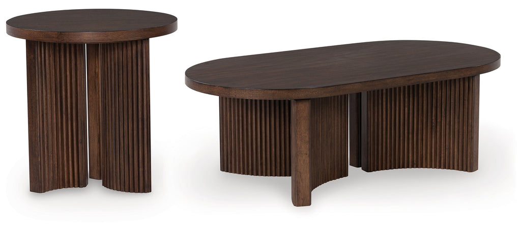 This occasional table package exemplifies casual contemporary design with an urban vibe. Its rich brown finish is warm and inviting, and decor looks that much sleeker when displayed on the thick tabletops. Trend-right reeded bases subtly nod to mid-century modern design. What a stunning reflection of your simple-meets-elegant sensibility.
