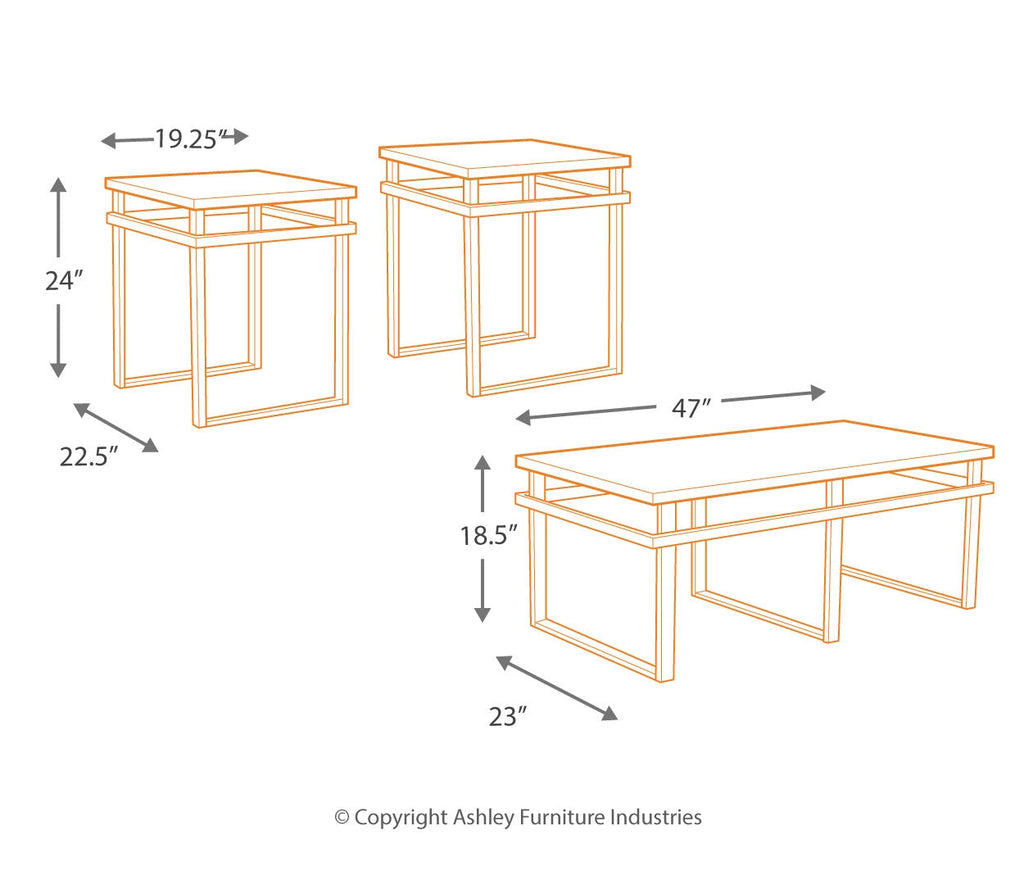 - Cocktail table : 0" : 47" W x 23" D x 18.38" H