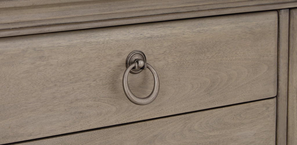 - Light gray finish enhances the natural wood grain