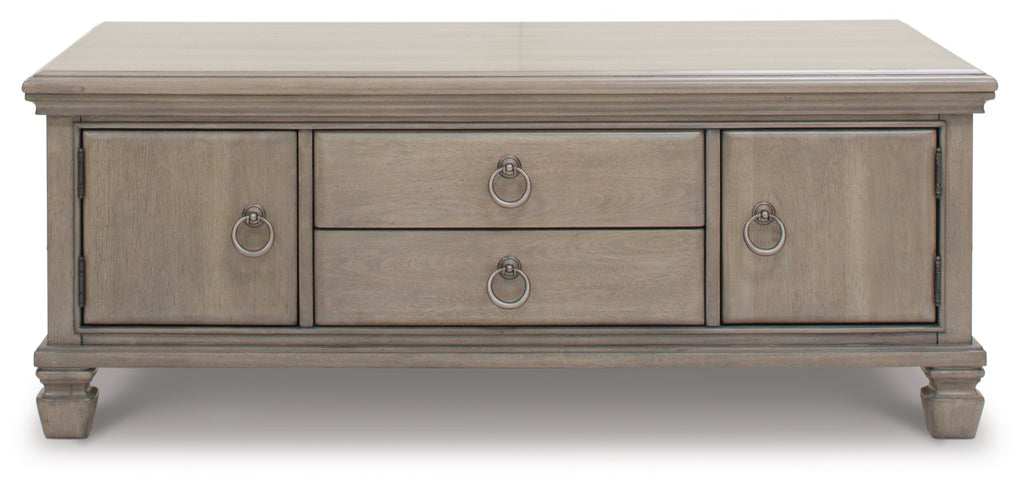 Traditional design motifs, redefined for the trends of today. This coffee table impresses with its overall transitional take on style. You’ll find that the light gray finish encourages an attitude of laid-back luxury. Complete with chic trunk-style construction, this table reigns over your living room with an air of casual elegance.
