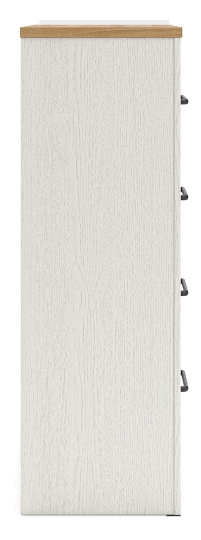 Create a serene countryside retreat with this chest of drawers. The two-tone design effortlessly adds farmhouse style, while framed drawer fronts with pewter-tone handles enhance its charming appeal. Looking for furniture that offers storage and a peaceful escape from your daily routine? This piece is just what you need.