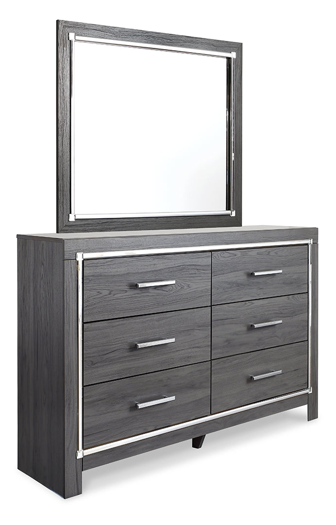 Reminiscent of Hollywood glamour of yesteryear, this dresser and mirror set interprets luxury in a decidedly modern way. A dazzling gray finish and faceted chrome-tone accents enhance the star power. Six smooth-gliding drawers provide enough storage to appease your inner diva.