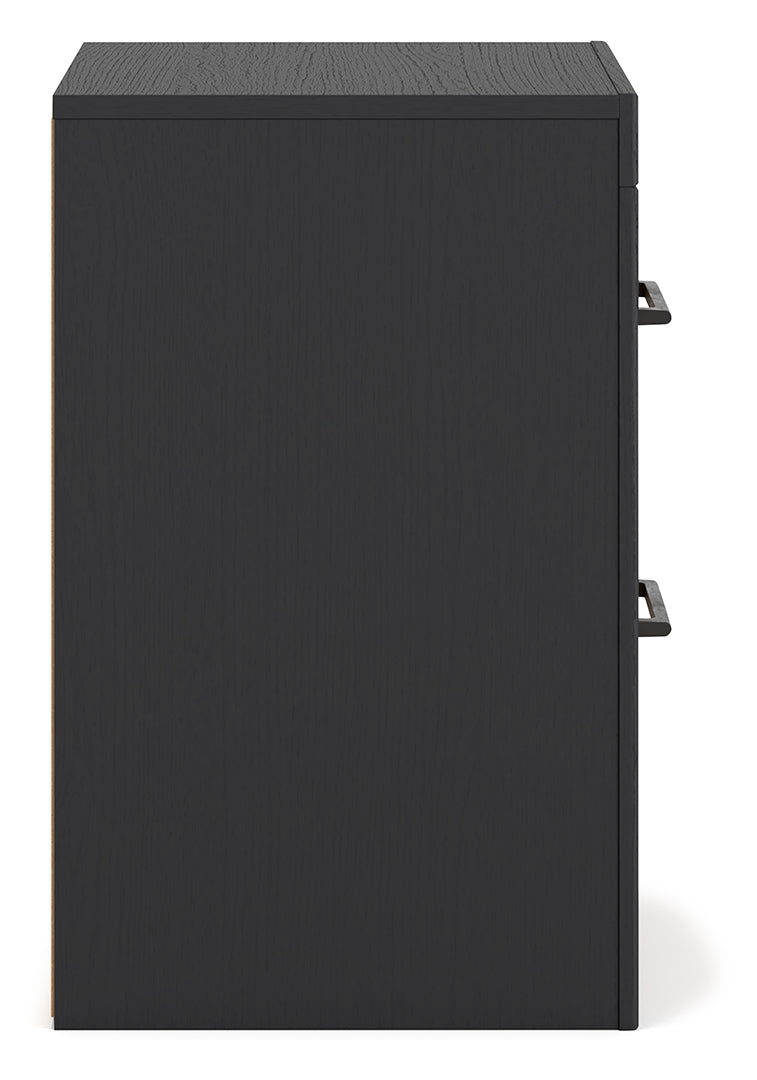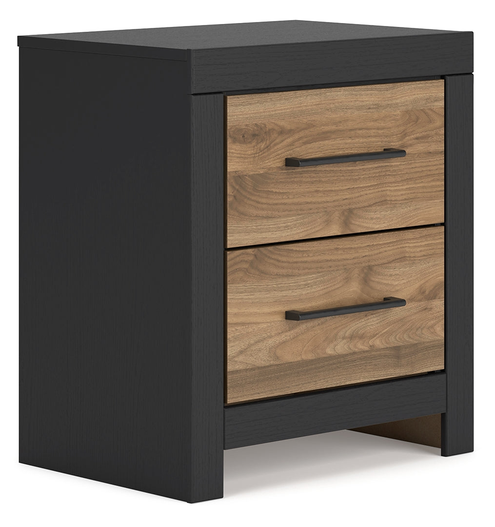 Relaxed yet striking, this nightstand brings casual beauty and function to your dream destination. A delightful two-tone treatment blends a fresh replicated walnut grain with a matte black finish, while sleek handles in an antiqued gunmetal finish lend a contemporary touch. You're sure to love its spacious drawers that glide open and offer plenty of storage for nighttime essentials. USB charging ports conveniently keep your devices powered up.