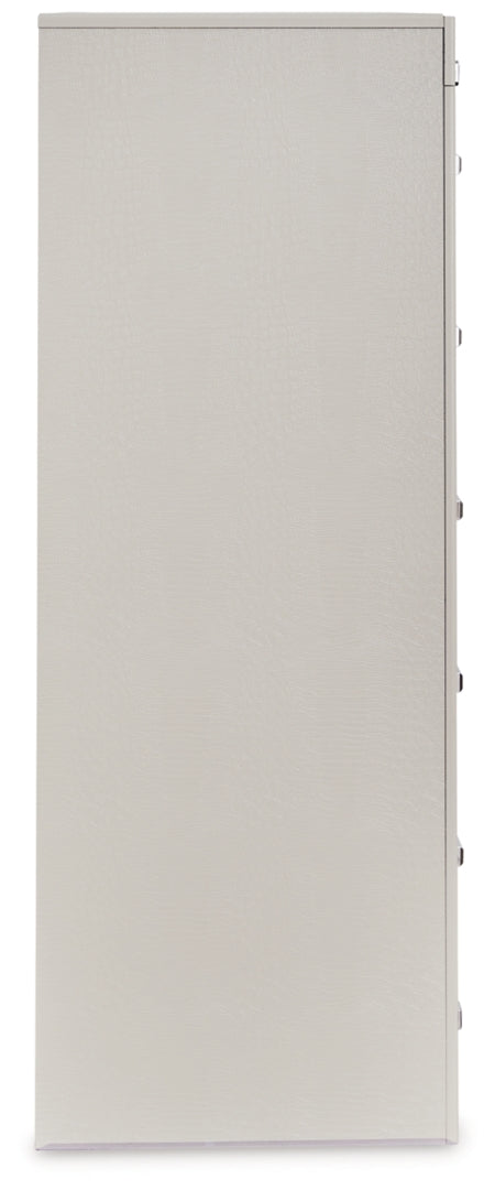 Bright, bold luxury. This chest of drawers dazzles with its attention to detail. Your love of glamorous style is reflected in its all-over faux gator in a metallic finish, exquisitely paired with faceted chrome-tone details. Complete with smooth-gliding storage drawers, it inspires you to live luxuriously every day—whether dressing up to go out or dressing down to stay in.