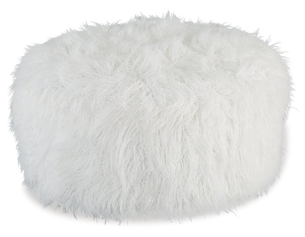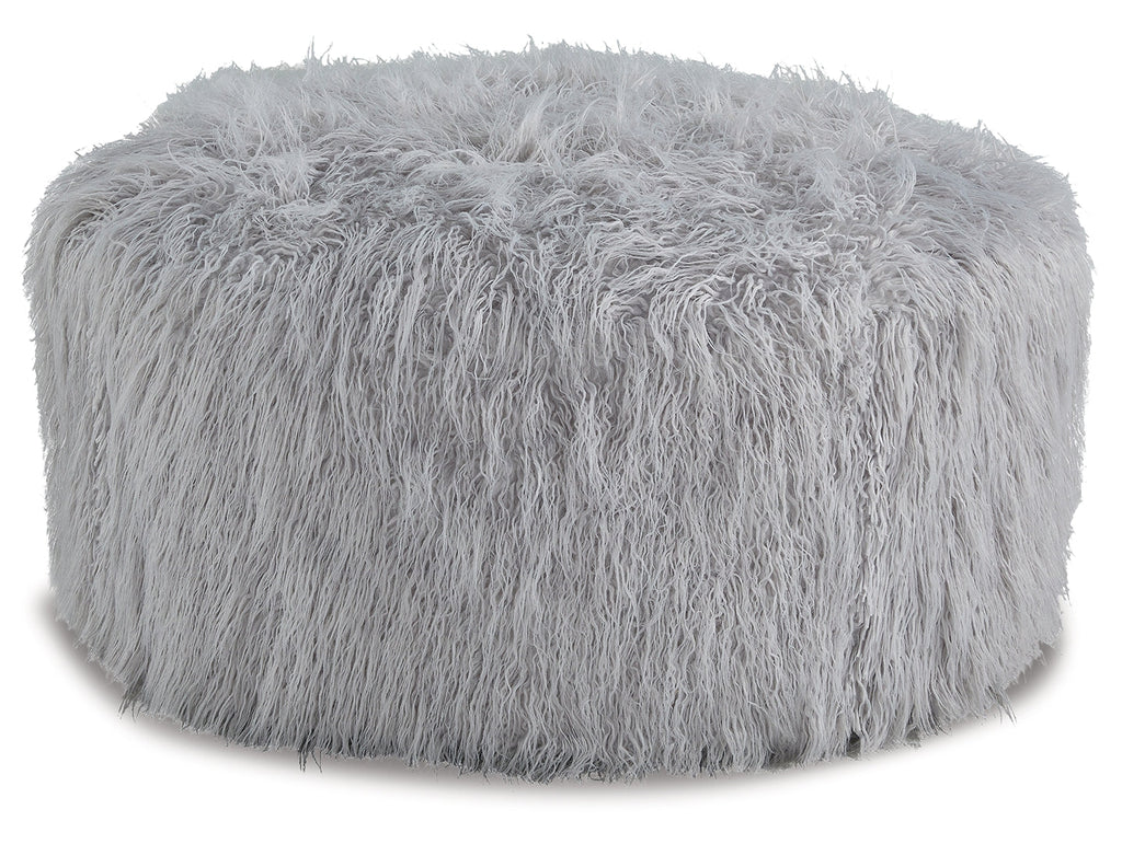 Don't shy away from decadence. Add a bit of bold design to your room with this oversized accent ottoman. The faux fur upholstery has a luxe look, and its casual light gray hue allows this plush piece to make a stylish statement in a variety of spaces.