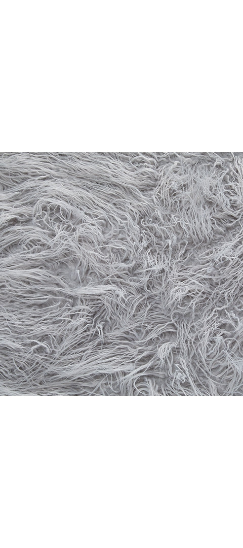 • Light gray faux flokati fur