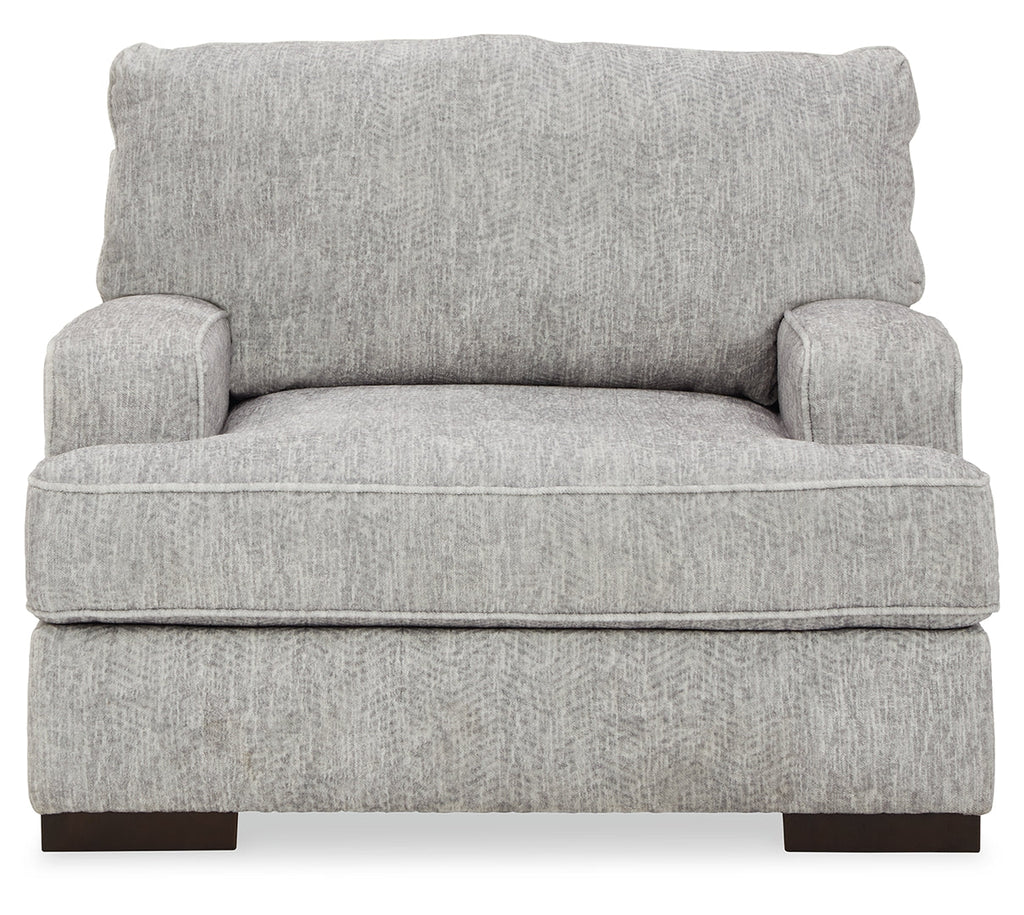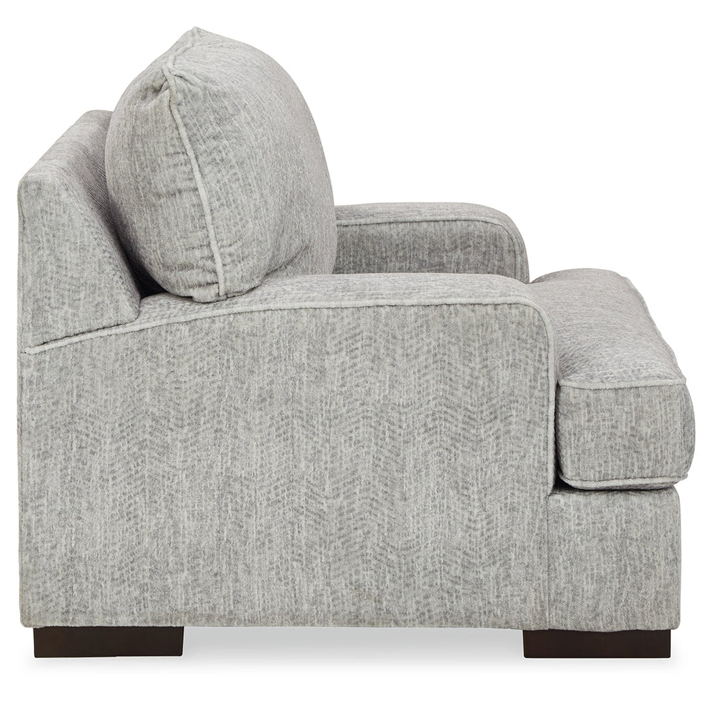 An indulgent choice with a deep seat crafted for ultra-plush softness, this chair is the ideal merger of modern flair and classic staying power. If you love a touch of texture along with a richly relaxed aesthetic, you’re sure to appreciate the chair’s gorgeous gray upholstery with a subtle chevron effect.