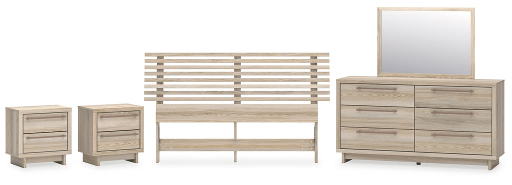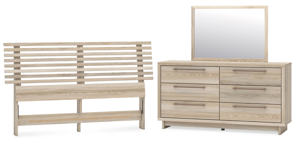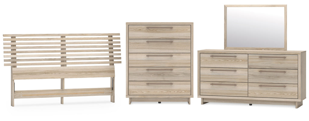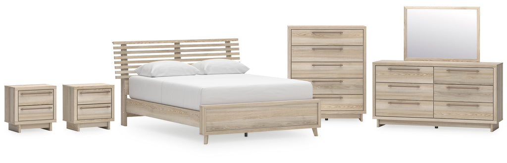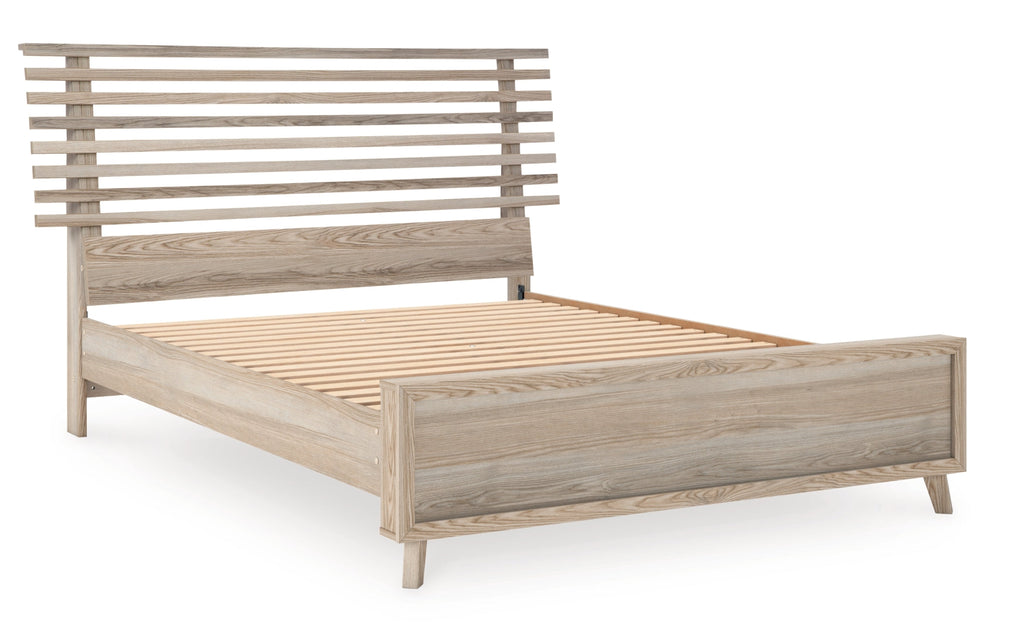 Modern meets neutral and sophisticated in the Hasbrick bedroom package. The natural finish and subtle replicated wood grain speak casual simplicity, creating a smart and stylish bedroom retreat. A refreshing take on style, indeed.